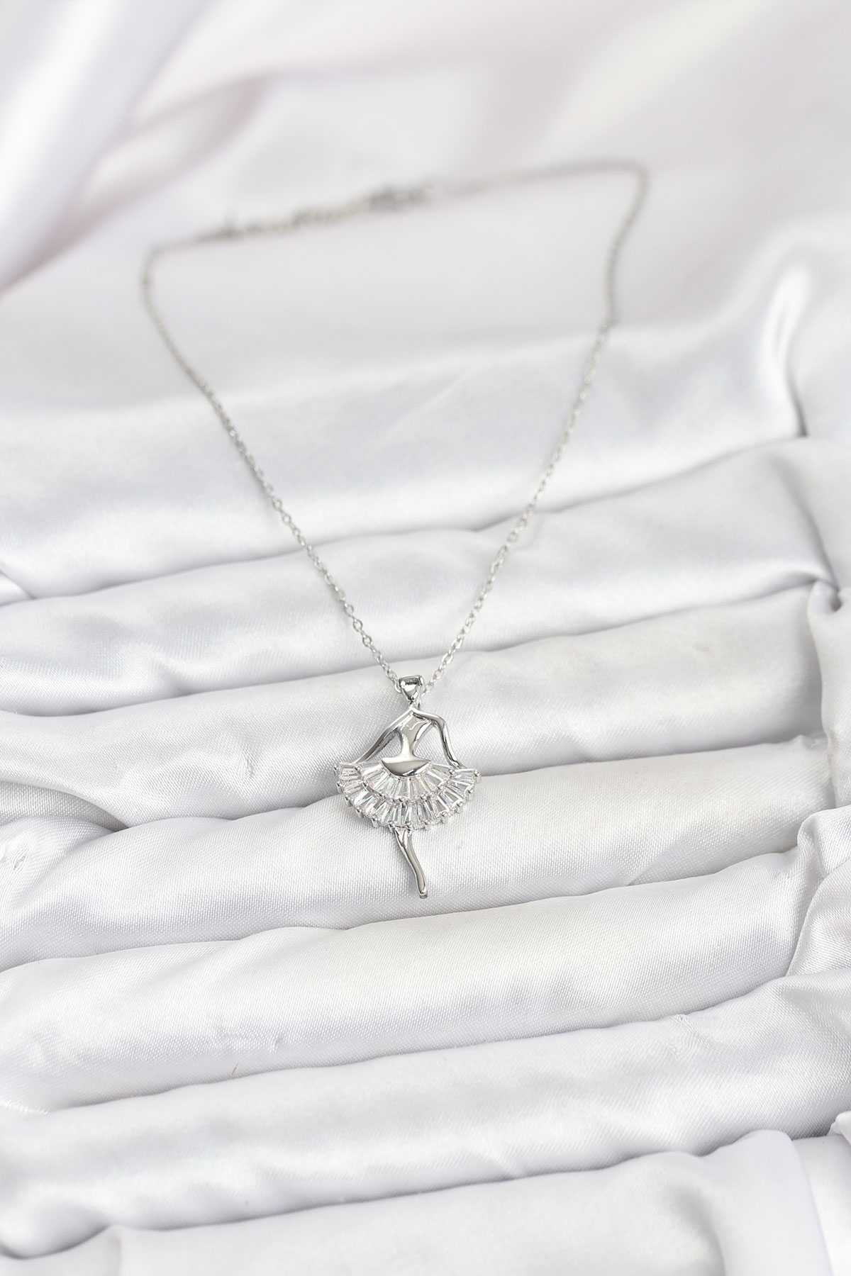 316L Çelik Gümüş Renk Balerin Model Kadın Kolye - 266788