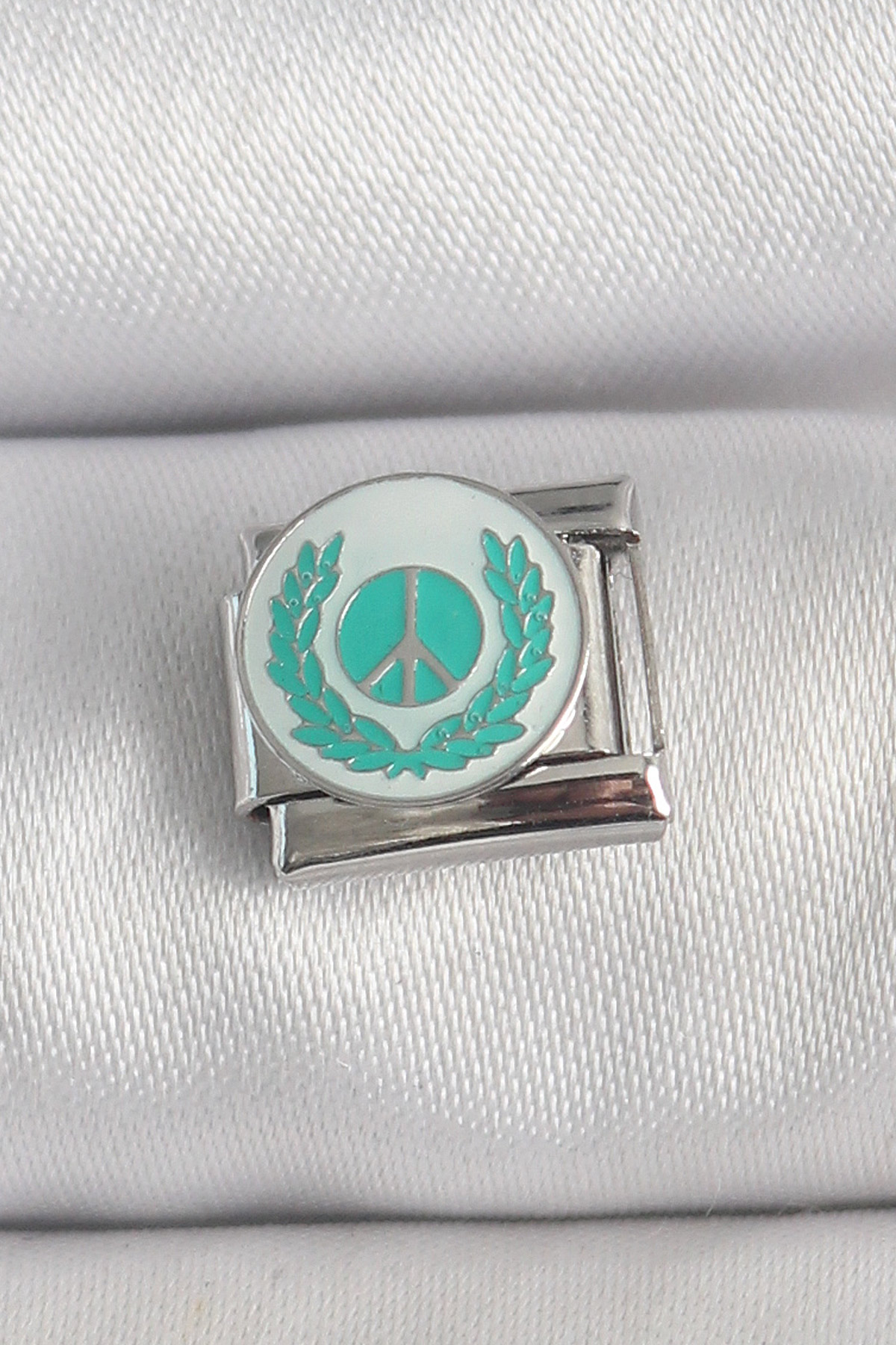 316L Çelik Gümüş Renk Beyaz Mavi Barış İşareti İşlemeli Nomination Charm - 262557