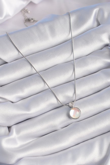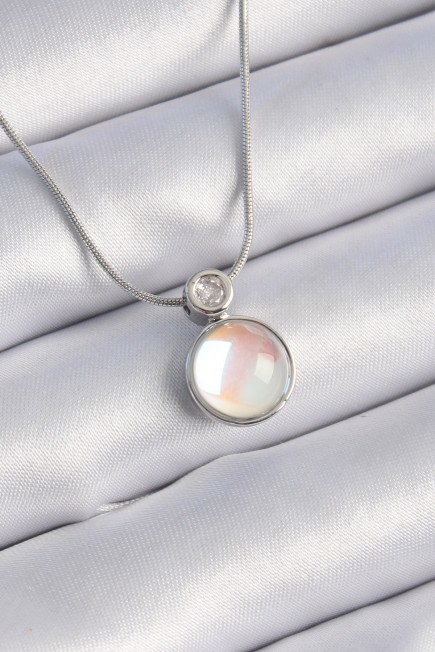 316L Çelik Gümüş Renk Beyaz Sedefli Vintage Model Kadın Kolye - 257740