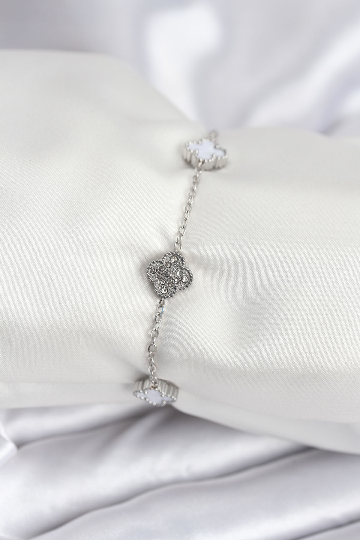 316L Çelik Gümüş Renk Beyaz ve Zirkon Taşlı Baby Boy Yonca Kadın Bileklik - 265741