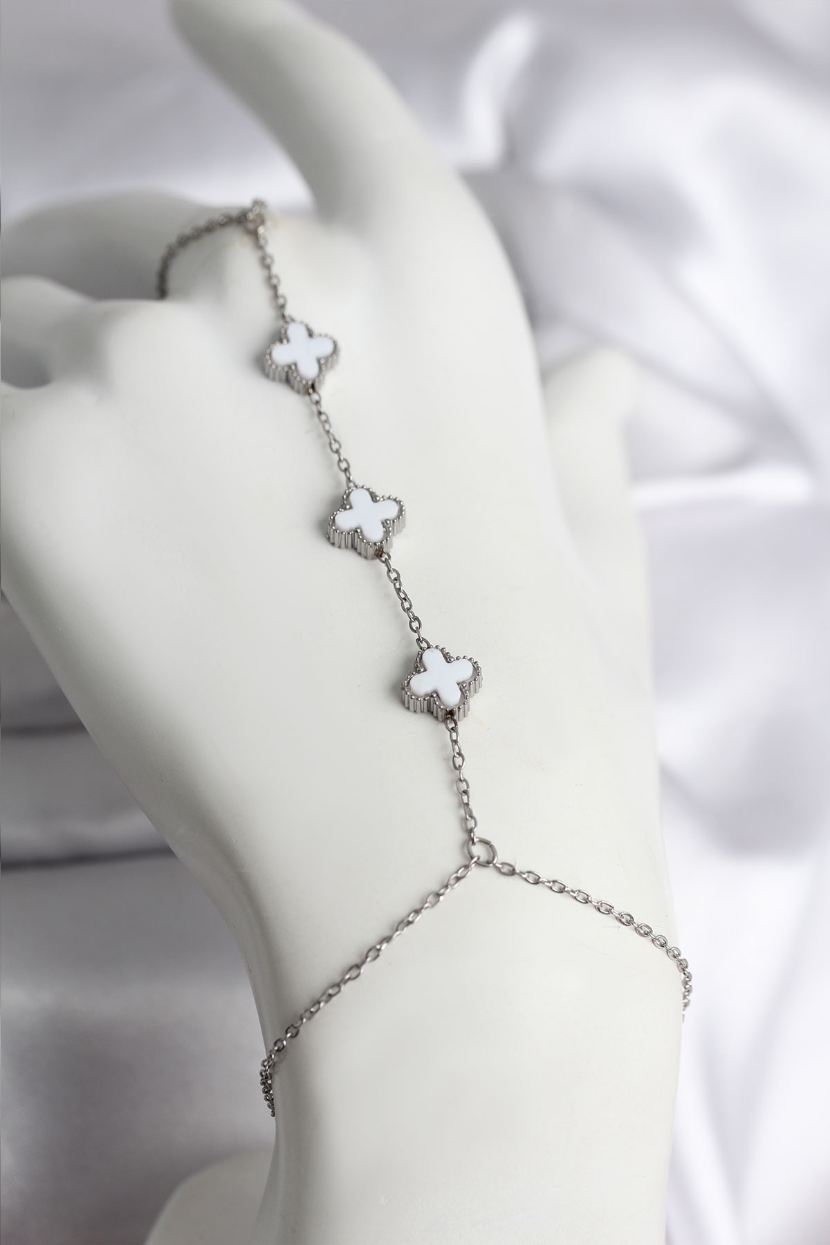 316L Çelik Gümüş Renk Beyaz Yonca Model Kadın Şahmeran - 266731