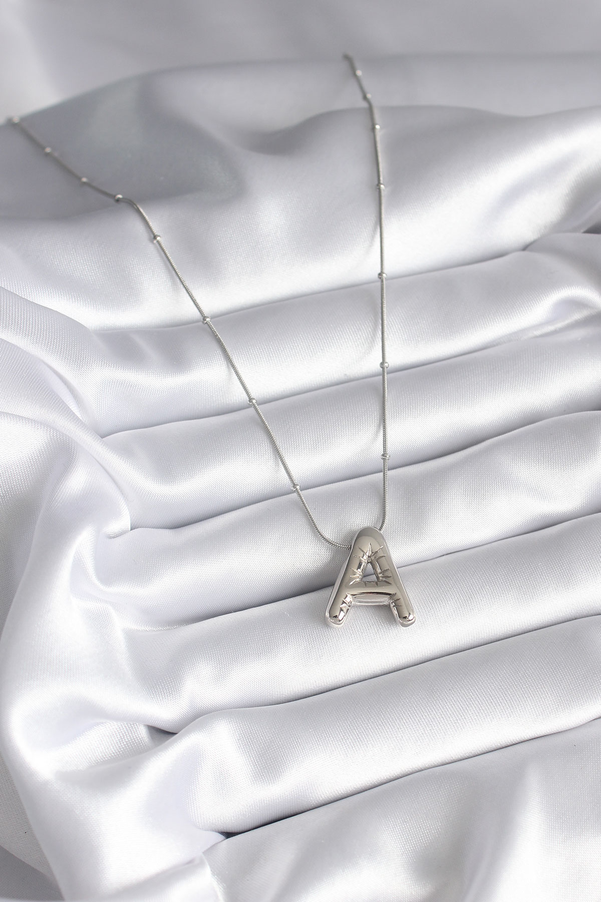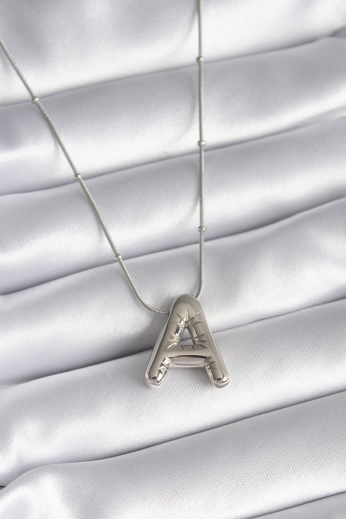 316L Çelik Gümüş Renk Bubble "A" Harf Model Kadın Kolye - 253664