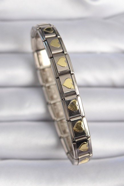 316L Çelik Gümüş Renk Gold Kalp İşleme Nomination Charm Bileklik - 258587