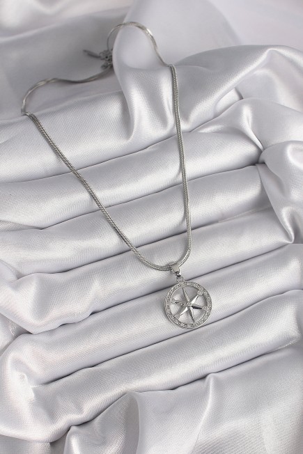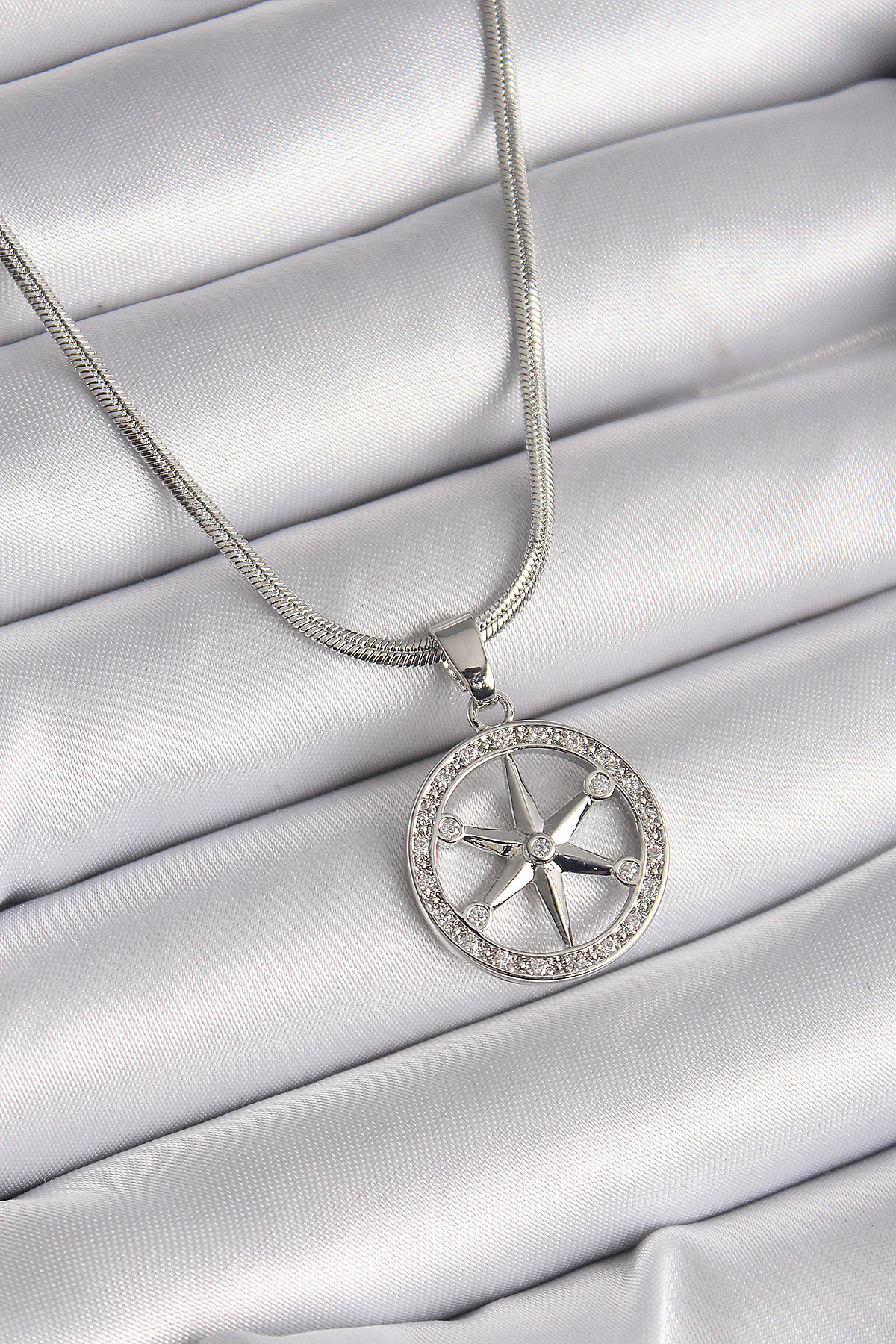 316L Çelik Gümüş Renk İtalyan Zincir Zirkon Taşlı Kutup Yıldız Model Kadın Kolye - 259366