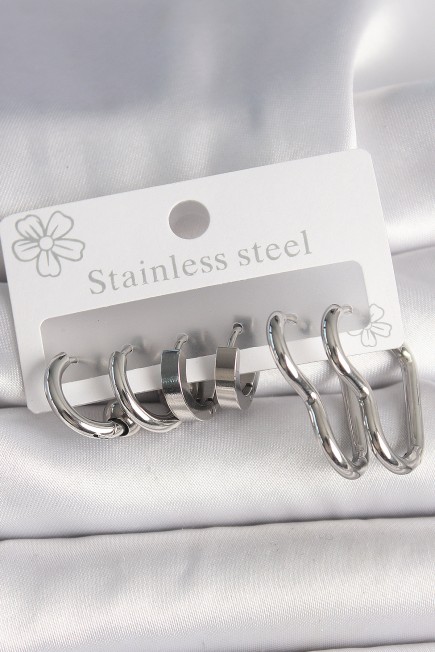 316L Çelik Gümüş Renk Kalp Halka Model Kadın Küpe Seti - 261477