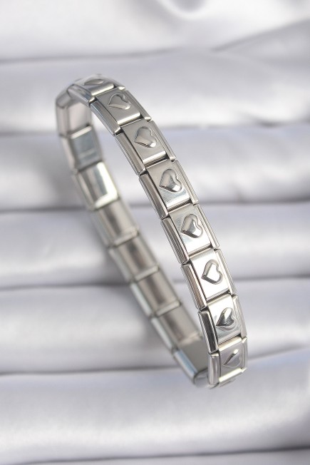 316L Çelik Gümüş Renk Kalp İşleme Nomination Charm Bileklik - 258588