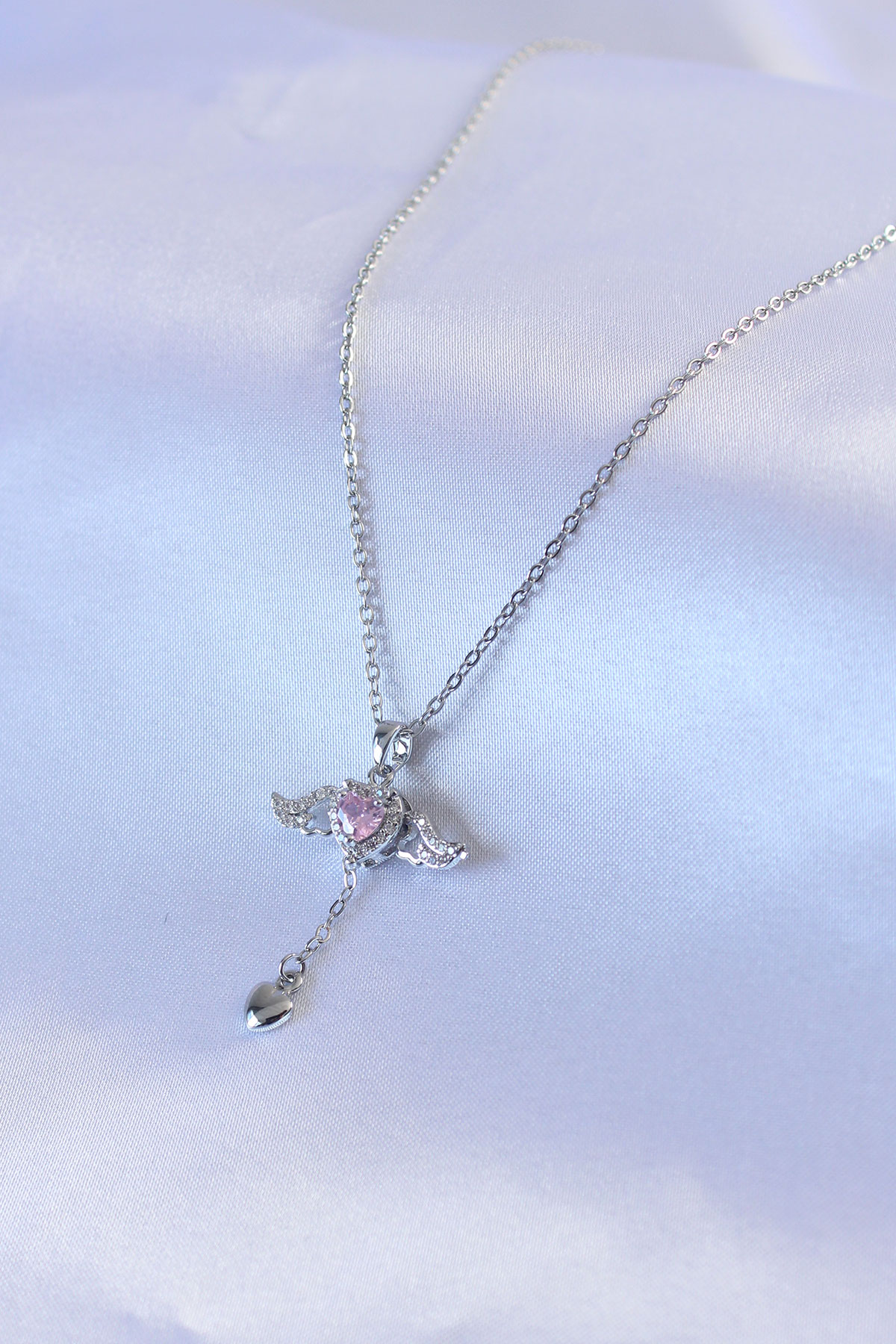 316L Çelik Gümüş Renk Kanatlı Kalp Figür Zirkon Taş Detay Kadın Kolye - 248944