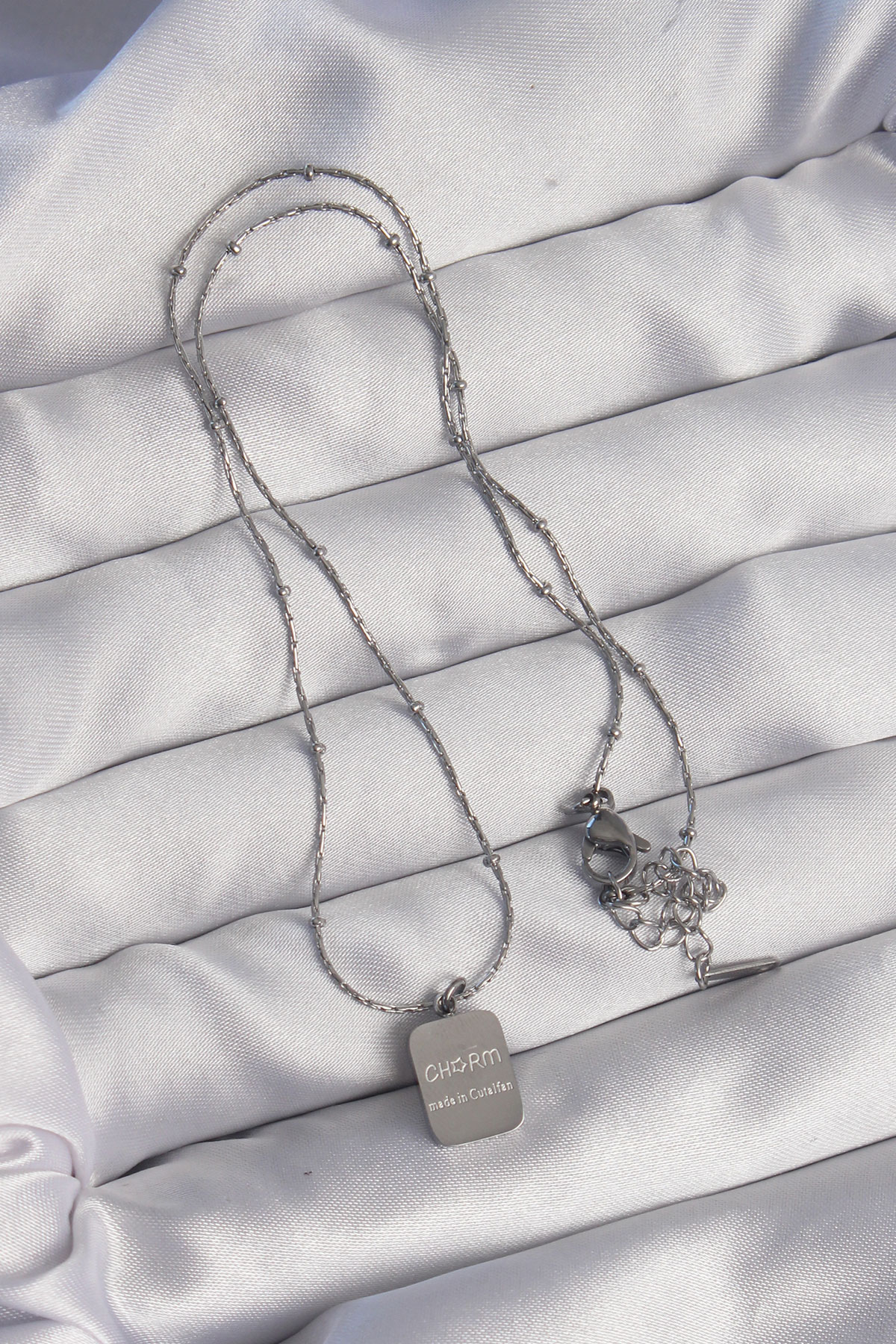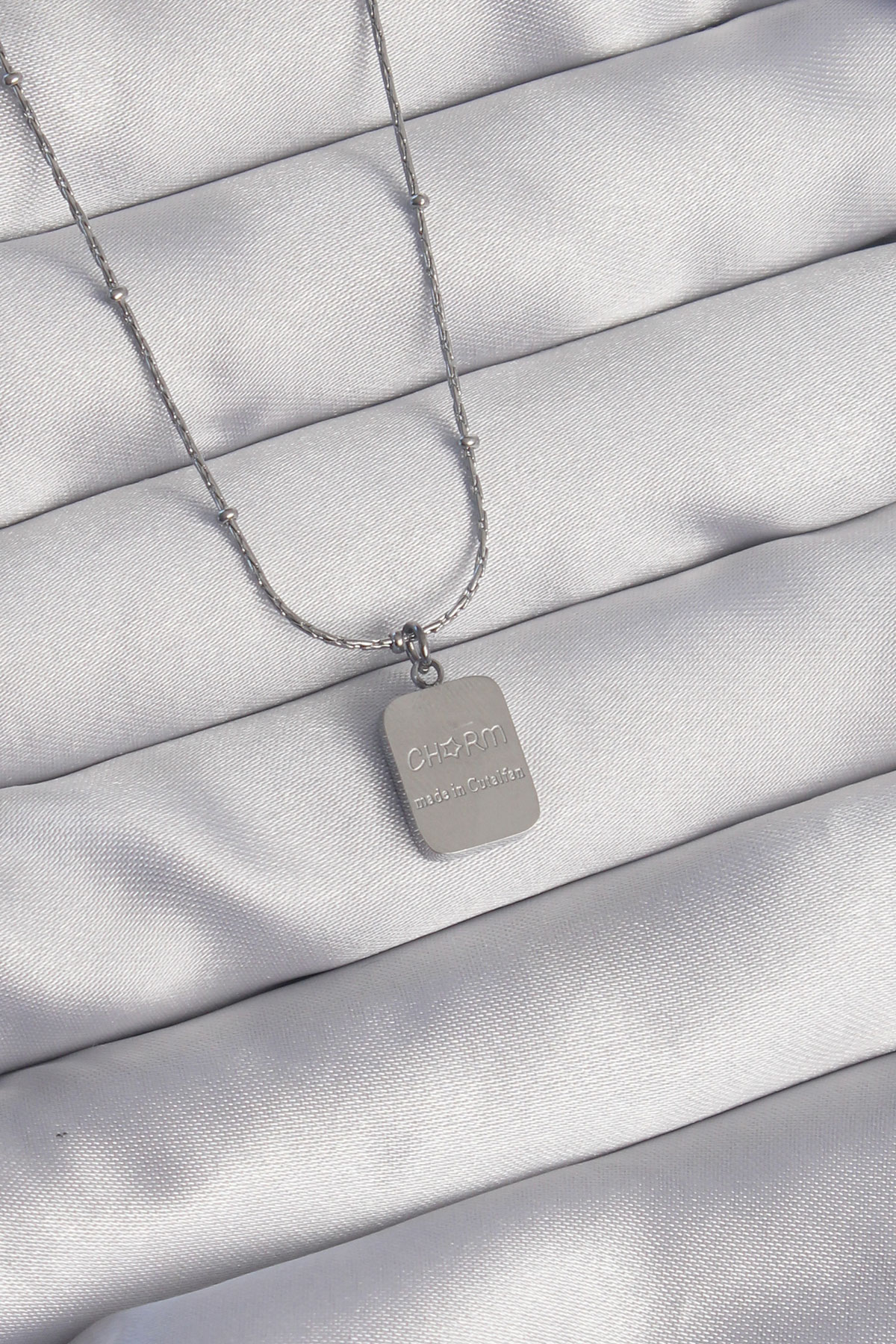 316L Çelik Gümüş Renk Kare Charm Model Kolye - 256140