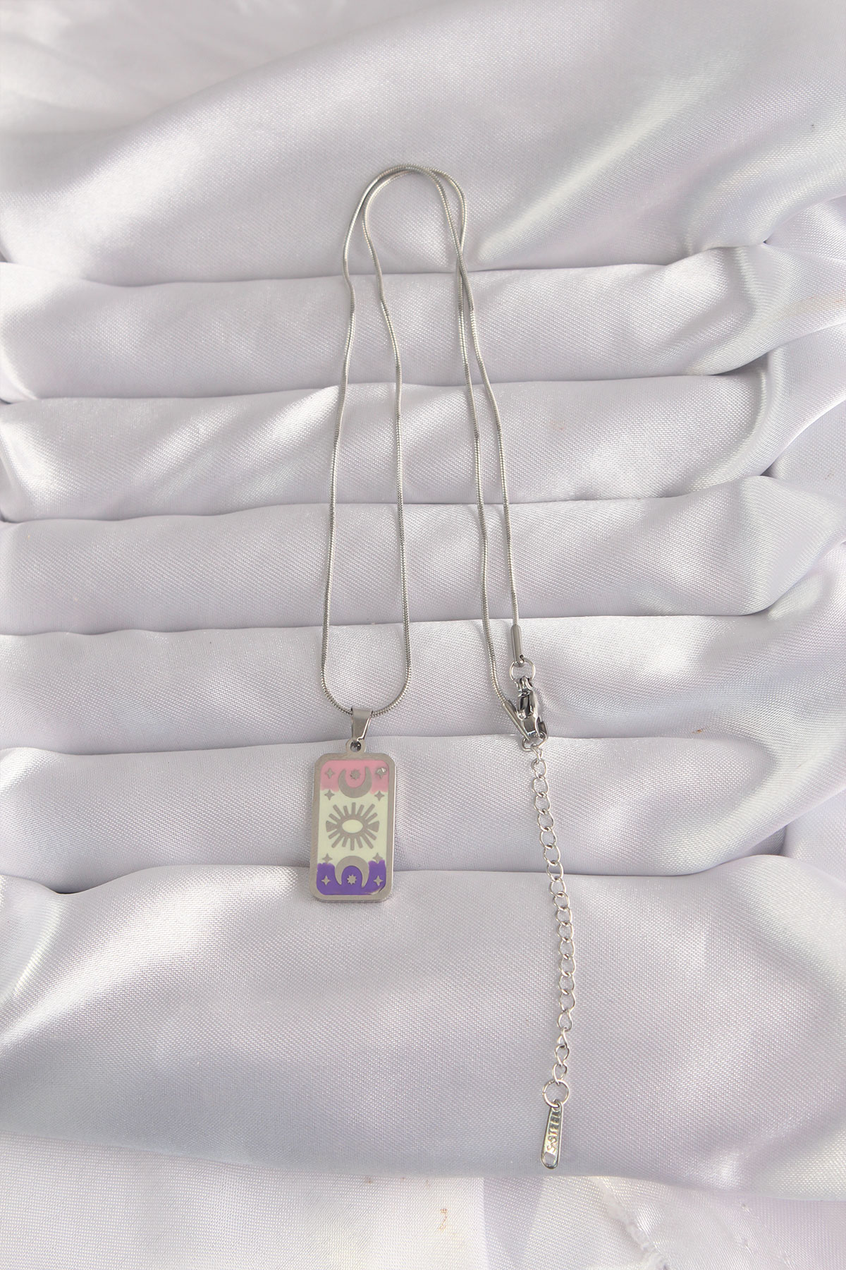 316L Çelik Gümüş Renk Karışık Mineli Ay Figür Tarot Kolye - 256818