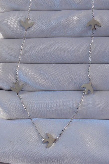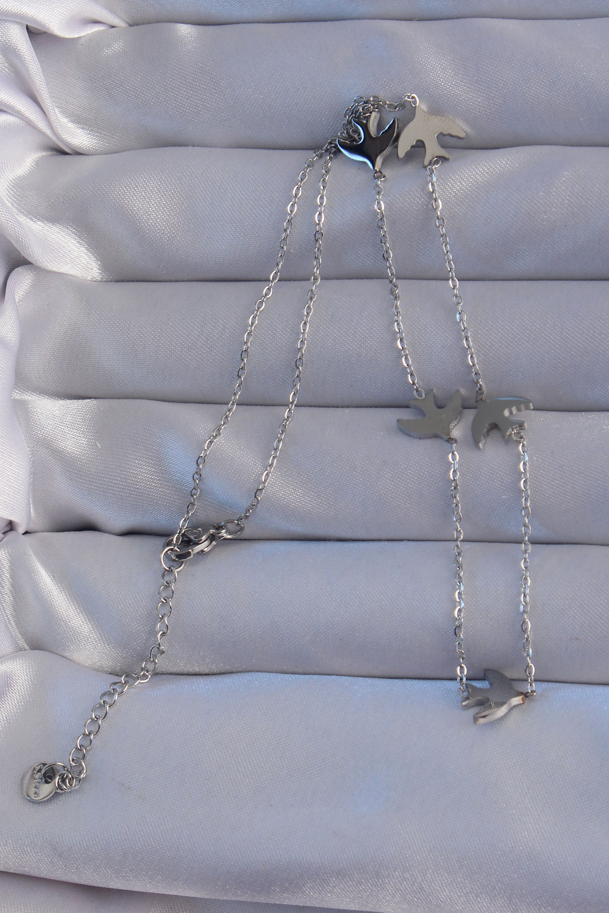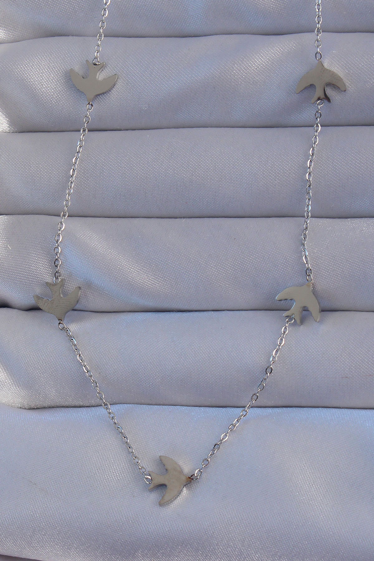 316L Çelik Gümüş Renk Kuş Model Kolye - 256240