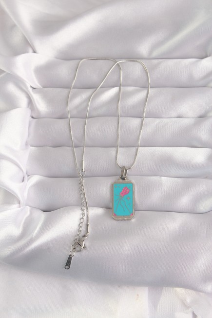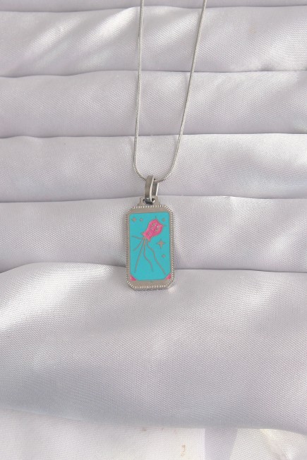 316L Çelik Gümüş Renk Mavi Mineli Tarot Kolye - 256820