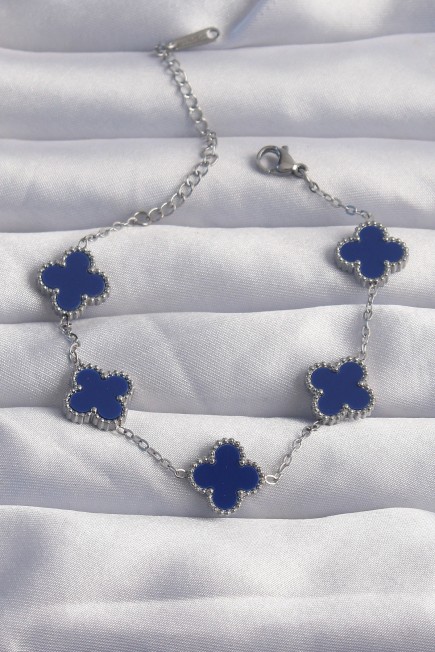 316L Çelik Gümüş Renk Mavi Mineli Yonca Bileklik - 256683
