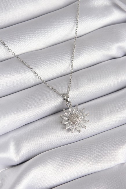316L Çelik Gümüş Renk Papatya Model Kadın Kolye - 253893