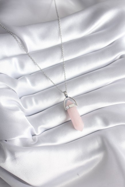 316L Çelik Gümüş Renk Pembe Taşlı Kadın Kolye - 253076