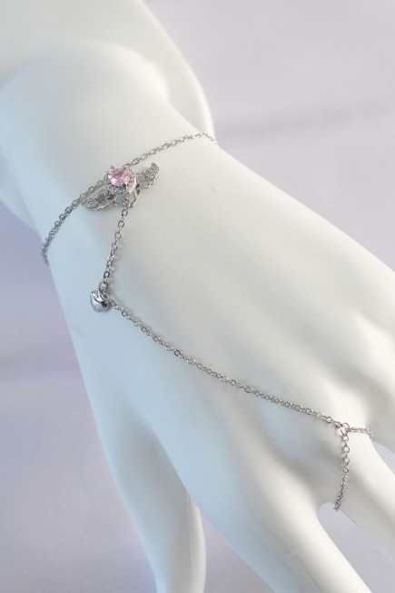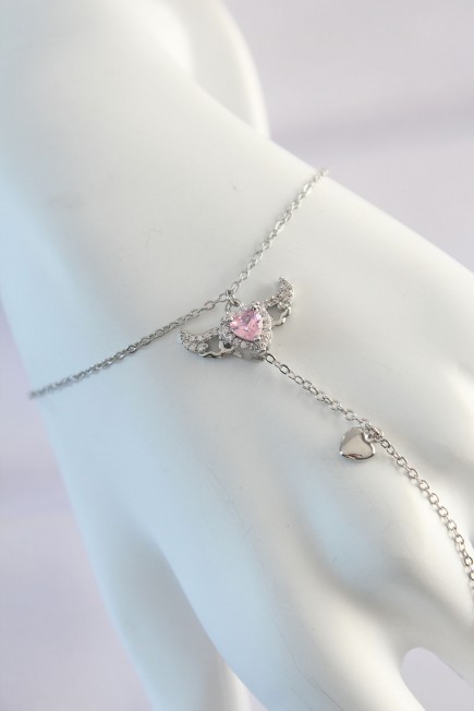 316L Çelik Gümüş Renk Pembe Zirkon Taşlı Kanatlı Kalp Model Şahmeran - 254937