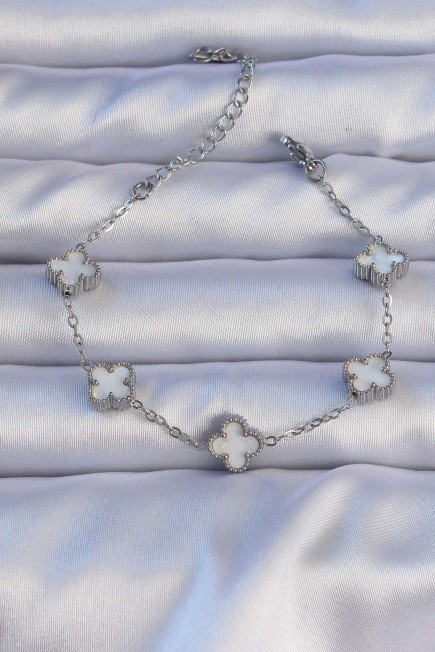 316L Çelik Gümüş Renk Sedefli Baby Boy Yonca Model Bileklik - 256996