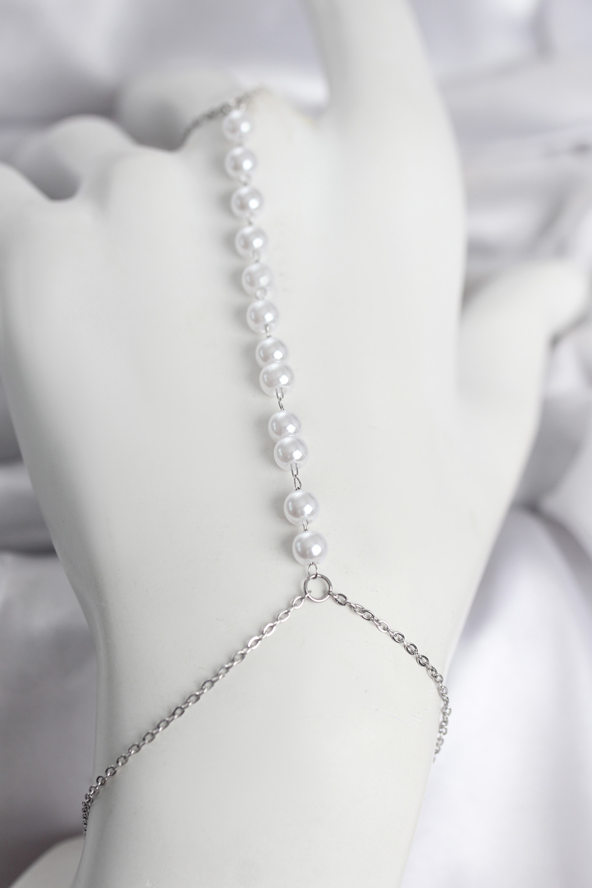 316L Çelik Gümüş Renk Sıralı İncili Model Kadın Şahmeran - 268164