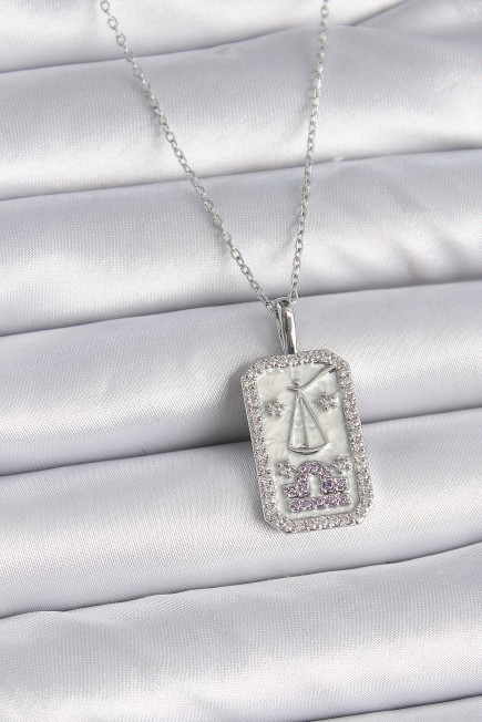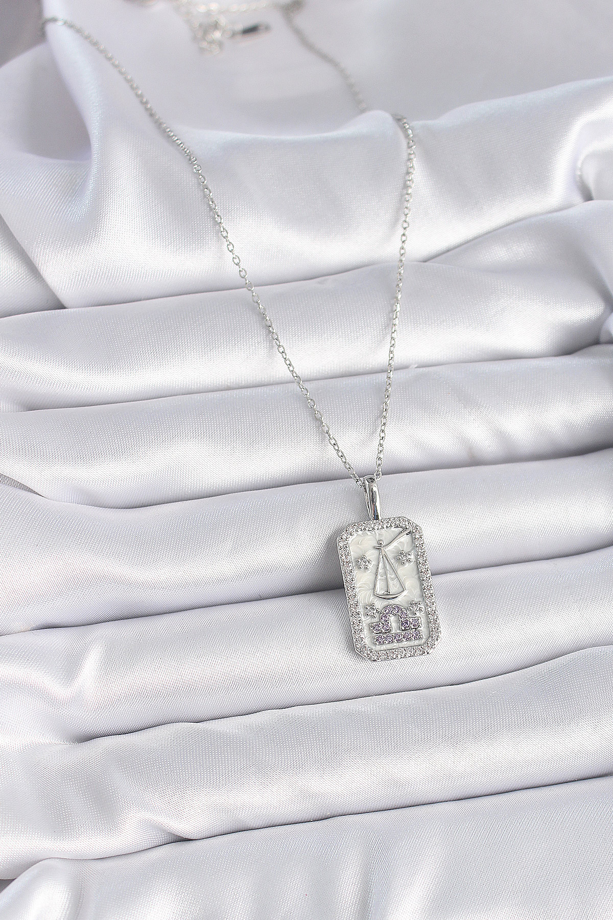 316L Çelik Gümüş Renk Terazi Burcu Zirkon Taşlı Kadın Kolye - 258637
