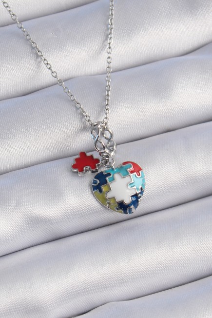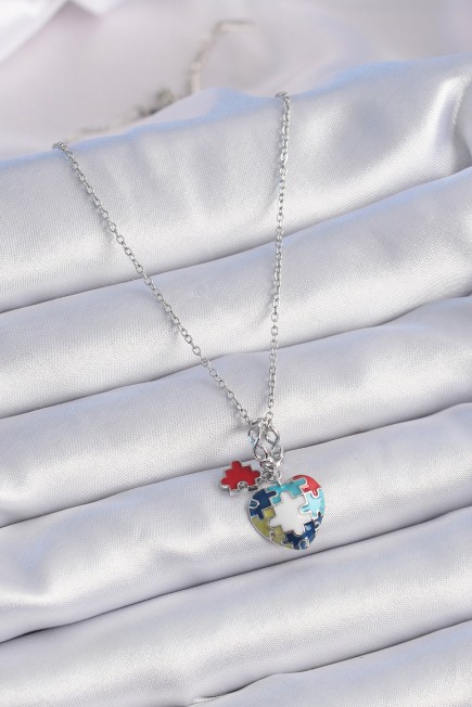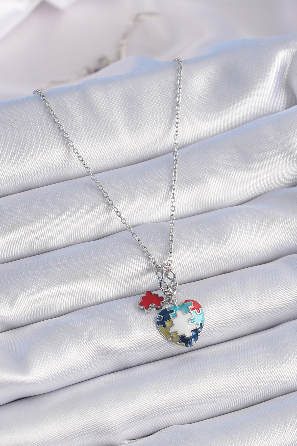 316L Çelik Gümüş Renk Yapboz Motif Kalp Figür Charm Model Kadın Kolye - 257728