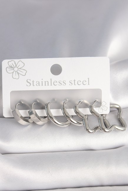 316L Çelik Gümüş Renk Yarım Halka Yıldız Model Kadın Küpe Seti - 261480