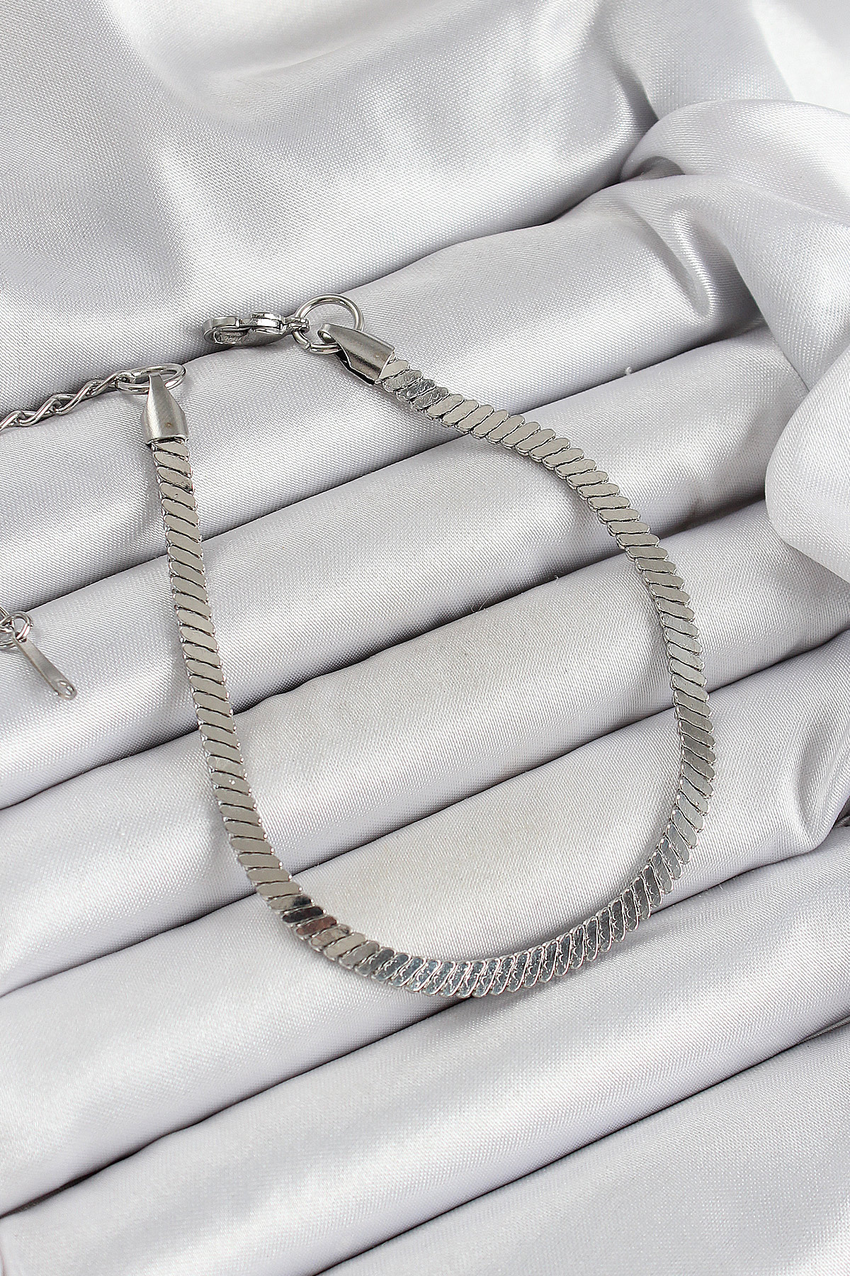 316L Çelik Gümüş Renk Yassı Zincir Model Kadın Bileklik - 263242