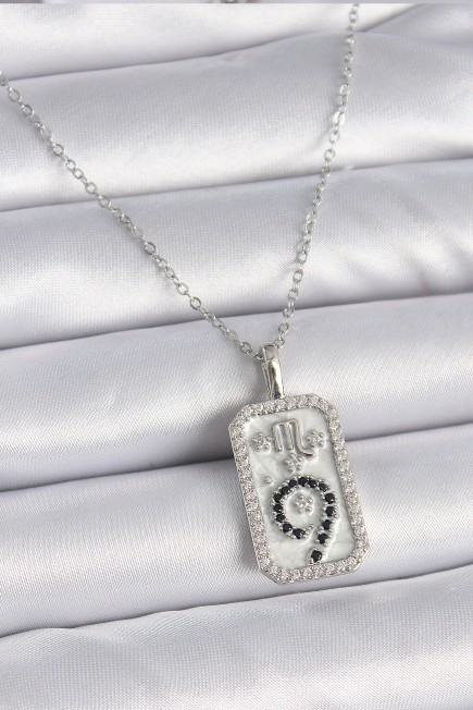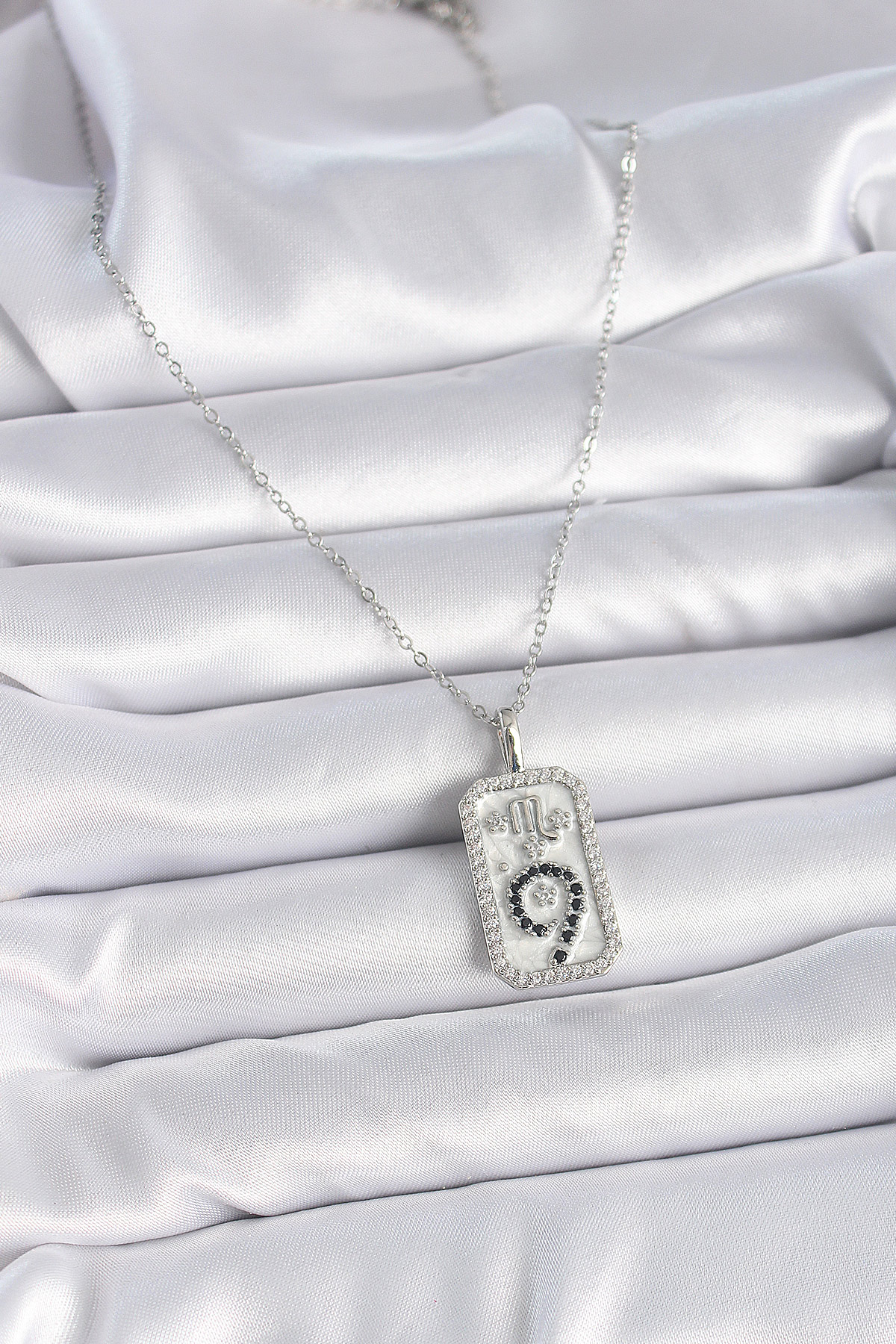 316L Çelik Gümüş Renk Zincir Akrep Burcu Zirkon Taşlı Kadın Kolye - 258636