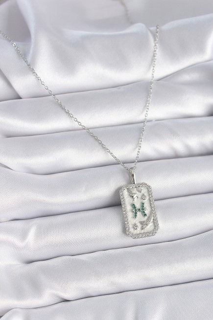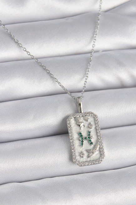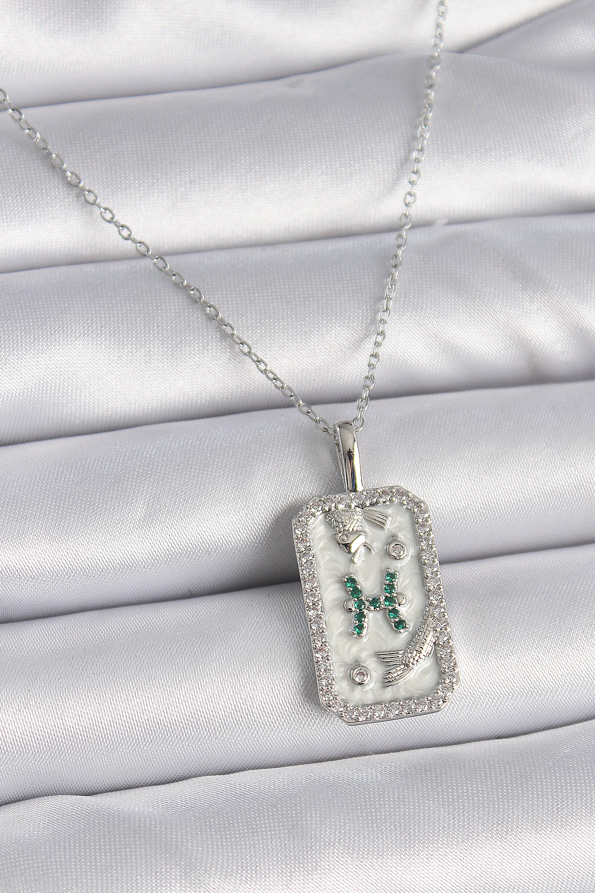 316L Çelik Gümüş Renk Zincir Balık Burcu Zirkon Taşlı Kadın Kolye - 258638