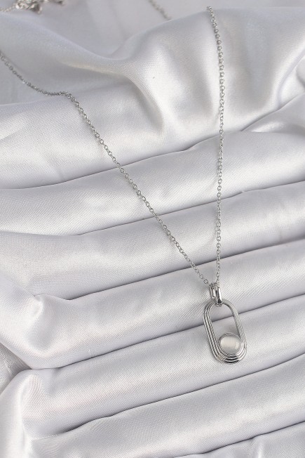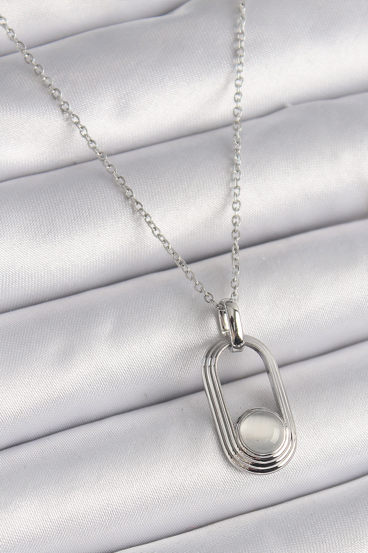 316L Çelik Gümüş Renk Zincir Beyaz Kedi Göz Model Kadın Kolye - 259490
