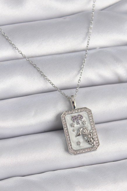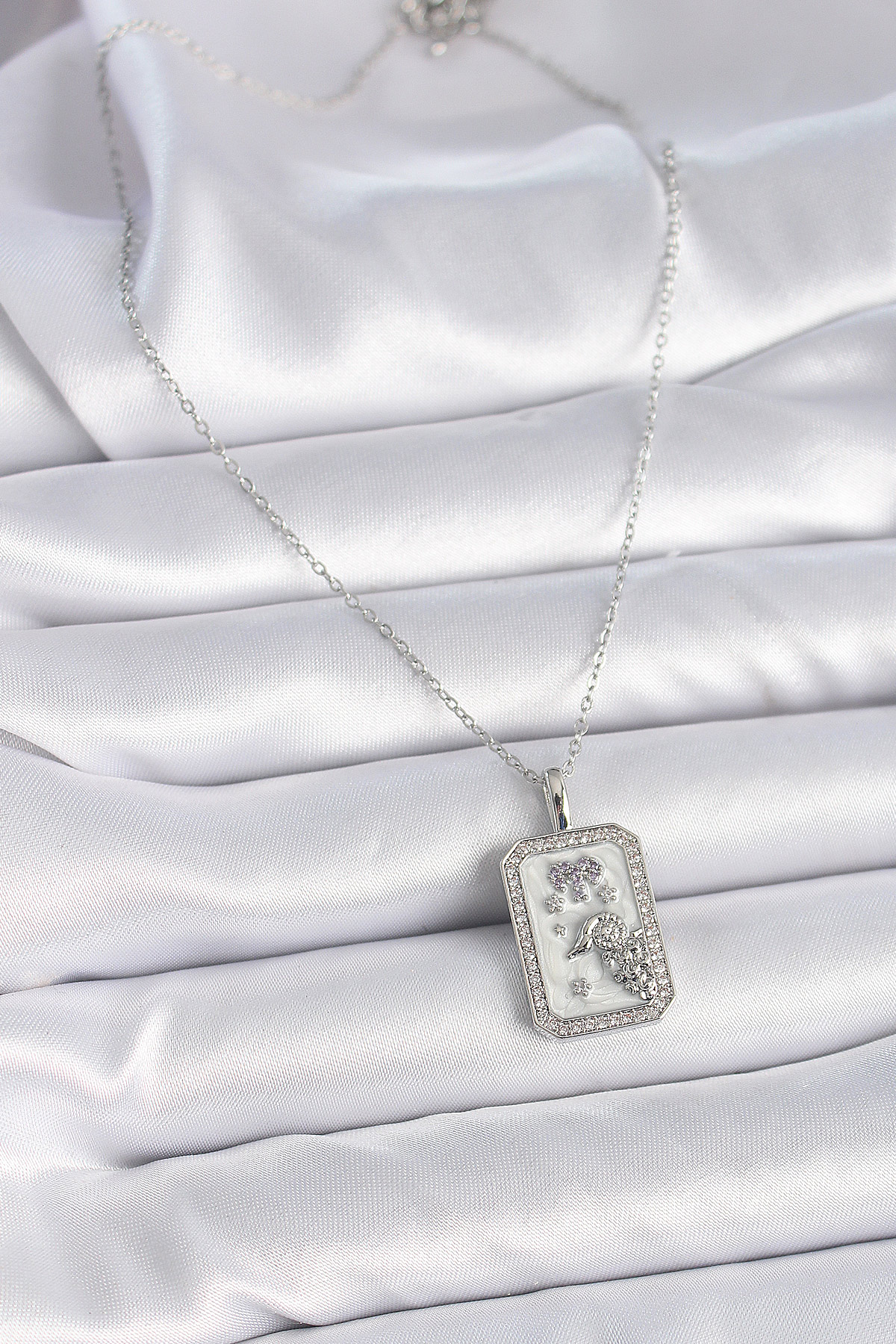 316L Çelik Gümüş Renk Zincir Koç Burcu Zirkon Taşlı Kadın Kolye - 258635