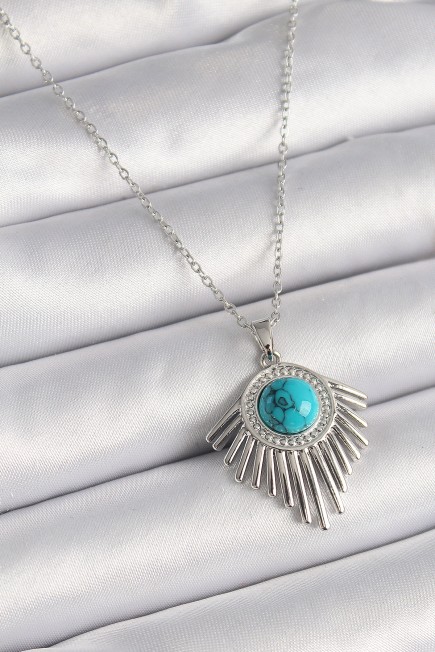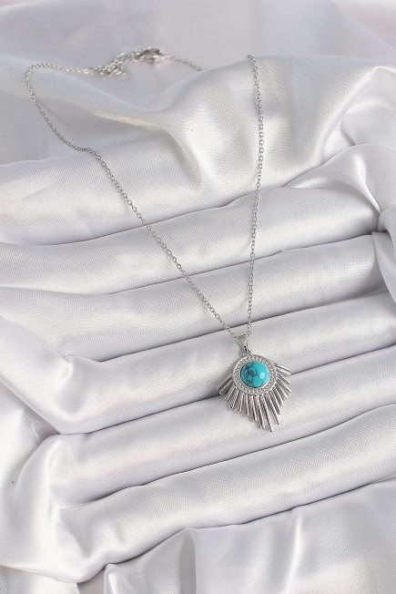 316L Çelik Gümüş Renk Zincir Mavi Boncuklu Zirkon Taşlı Kadın Kolye - 259495