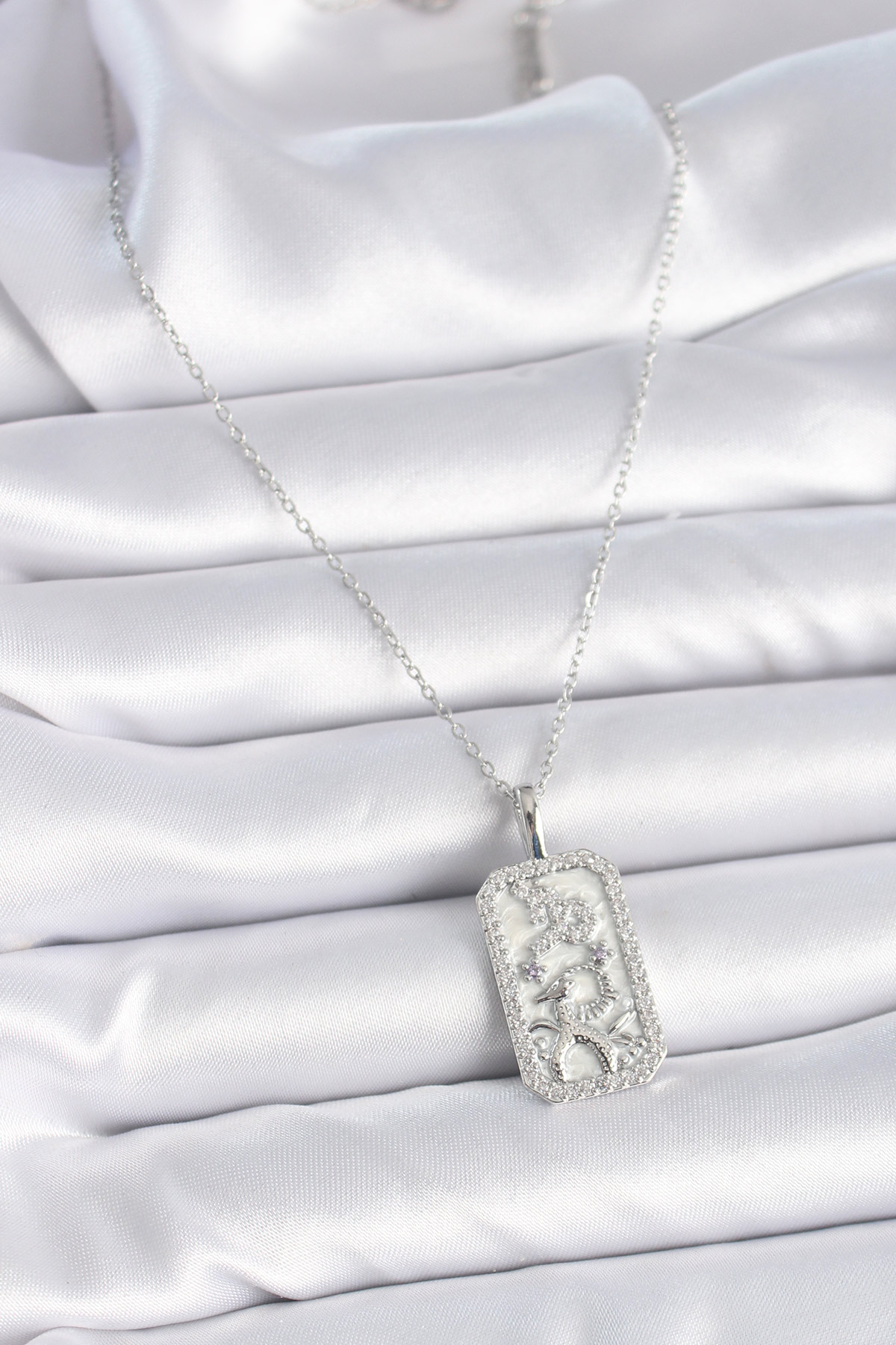 316L Çelik Gümüş Renk Zincir Oğlak Burcu Zirkon Taşlı Kadın Kolye - 258632