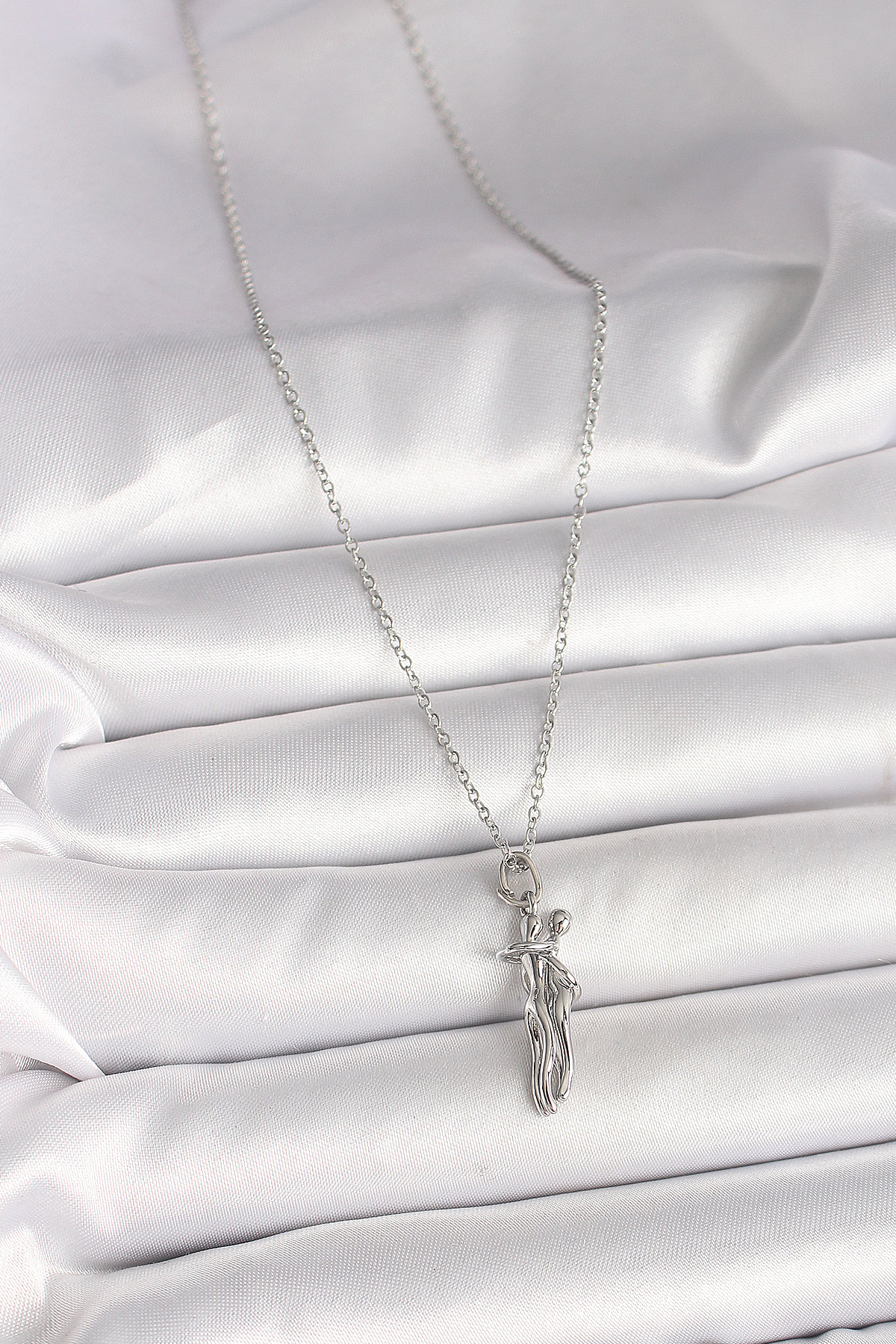 316L Çelik Gümüş Renk Zincir Sarılma Model Kadın Kolye - 261625
