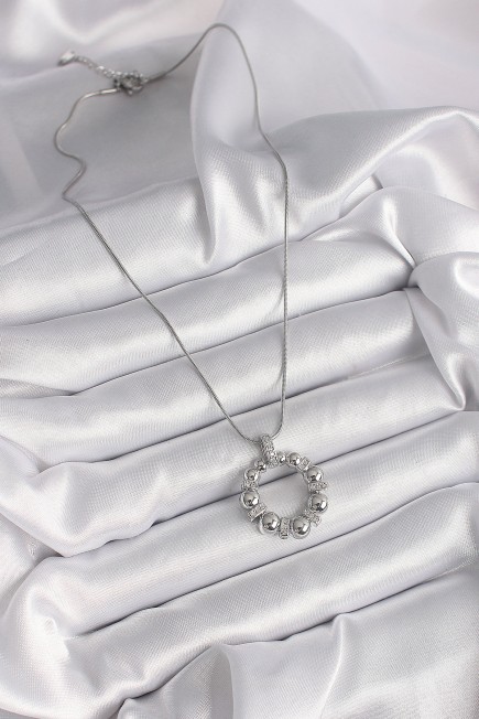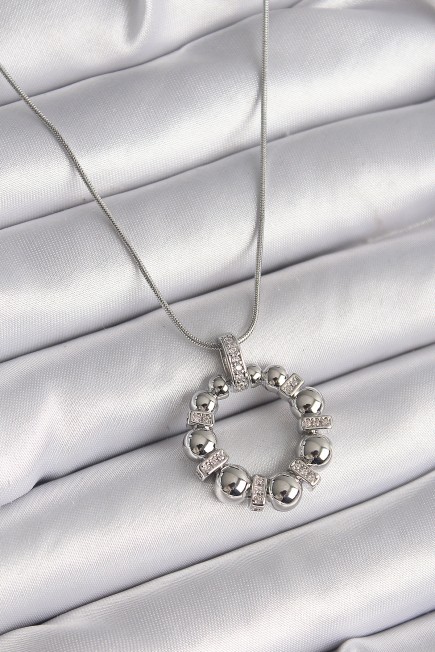 316L Çelik Gümüş Renk Zincir Zirkon Taş Detaylı Bombeli Halka Model Kadın Kolye - 259376
