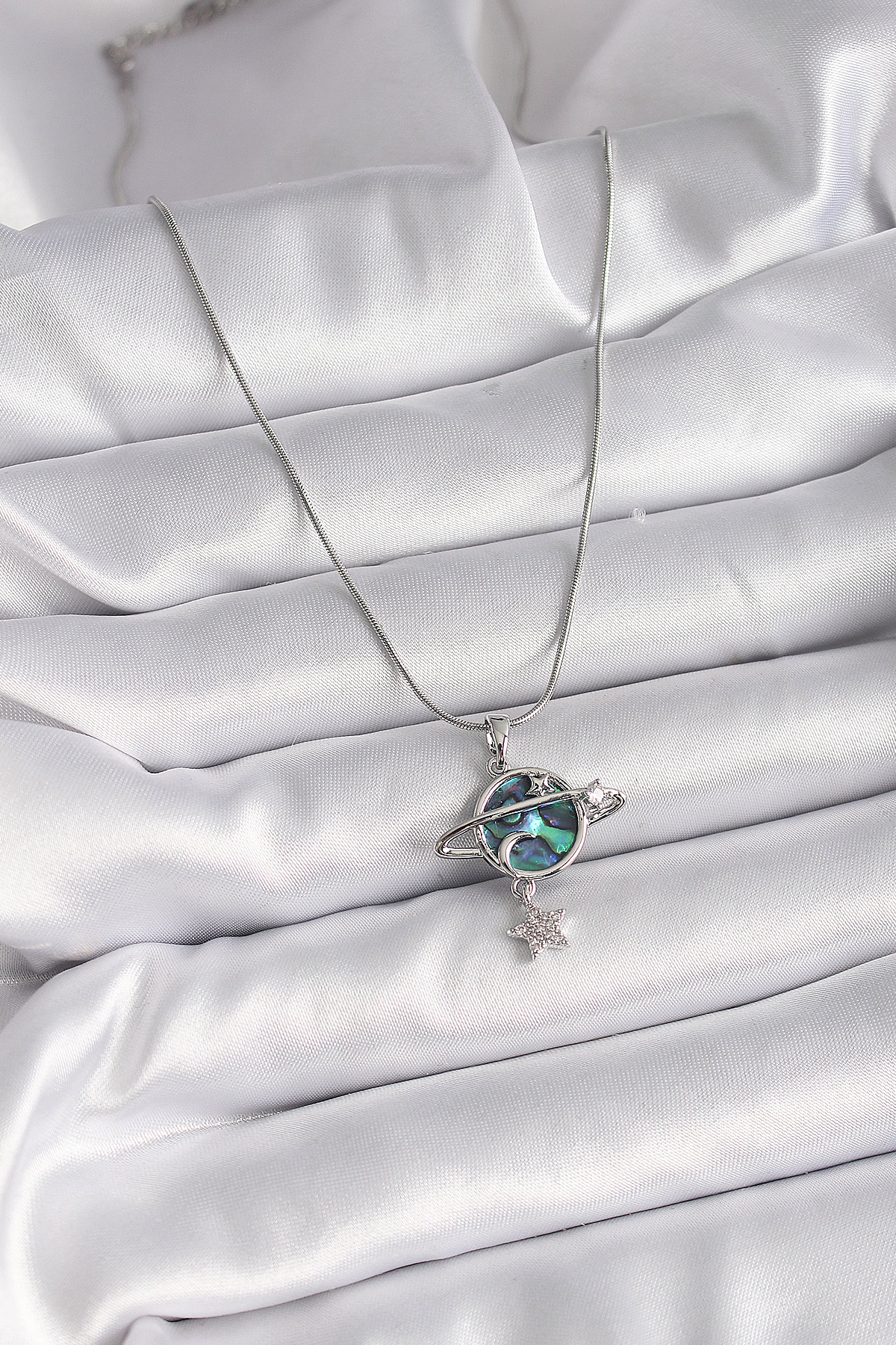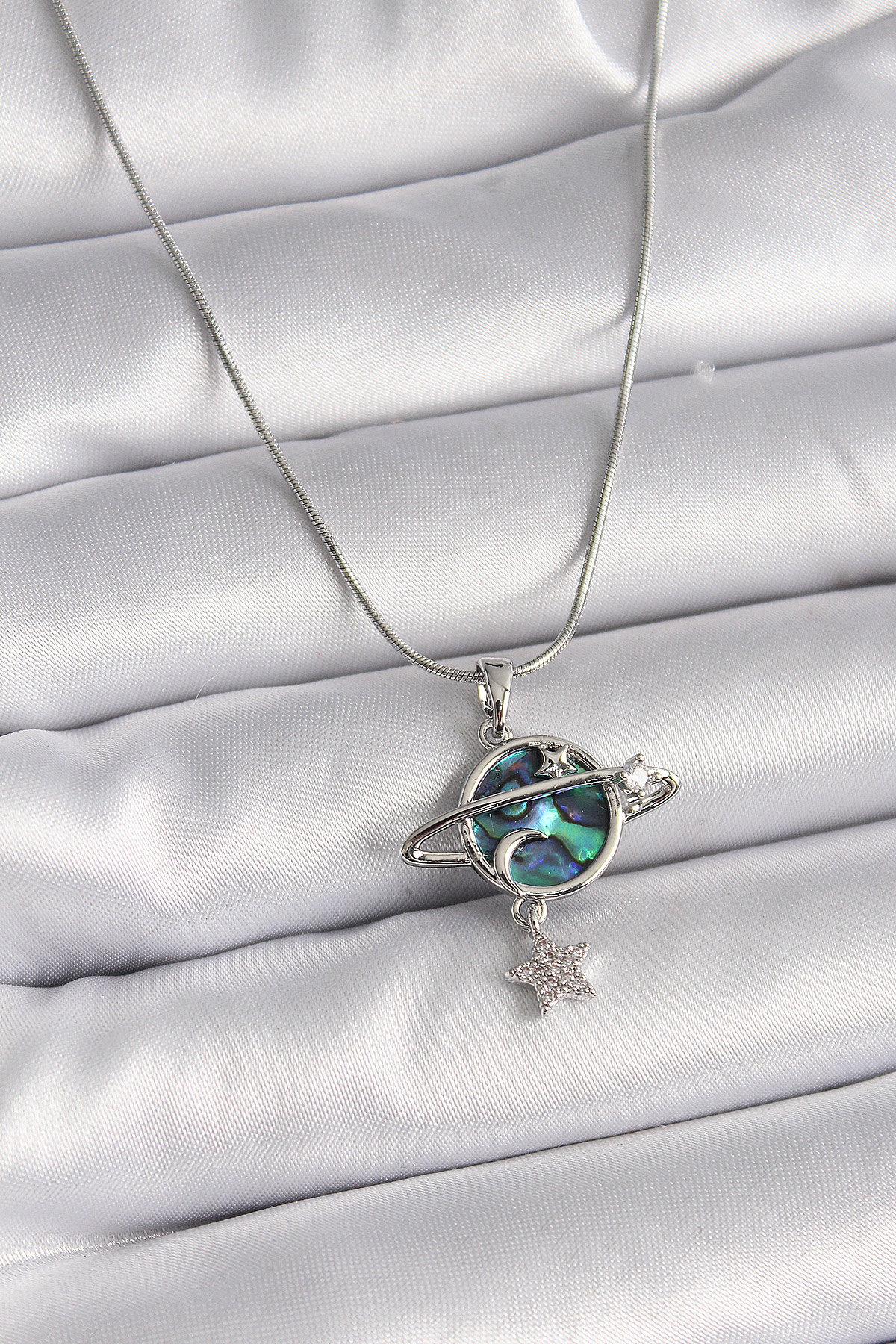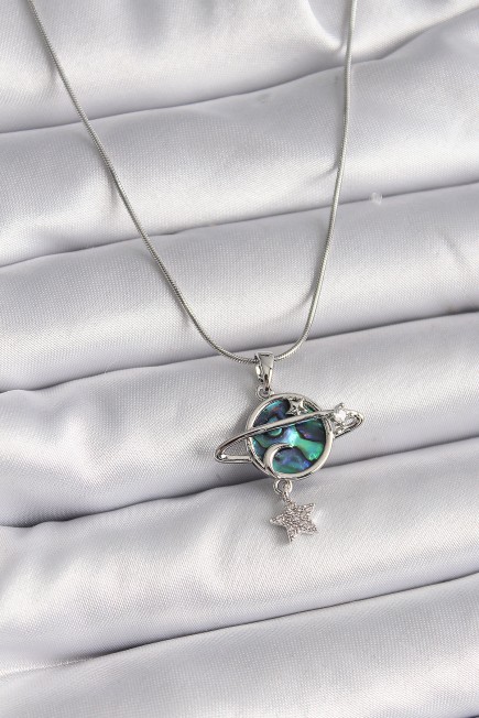 316L Çelik Gümüş Renk Zincir Zirkon Taşlı Gezegen Model Kadın Kolye - 258805