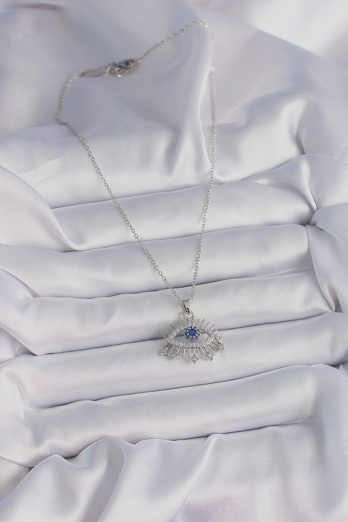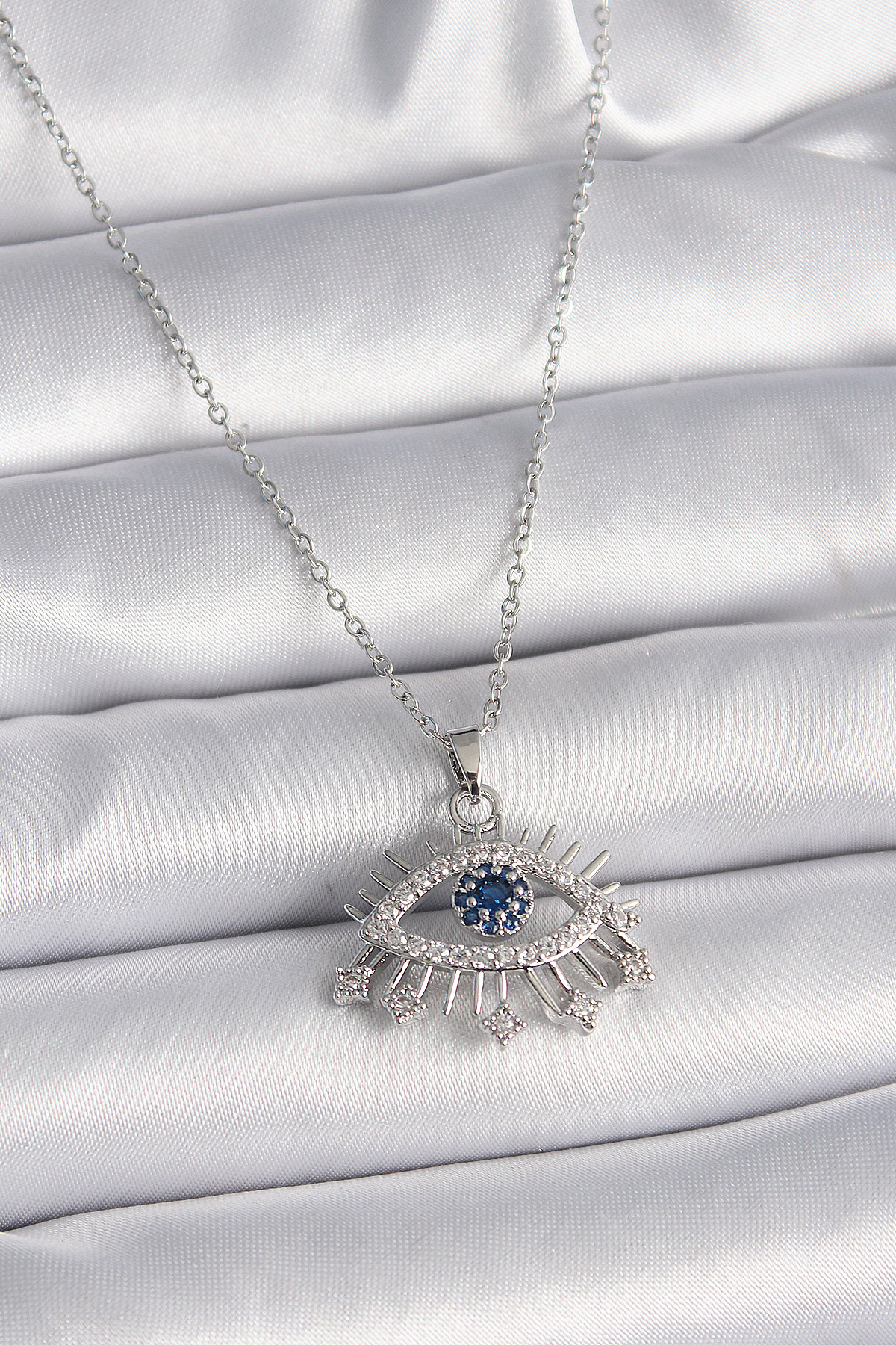 316L Çelik Gümüş Renk Zincir Zirkon Taşlı Göz Model Kadın Kolye - 259264
