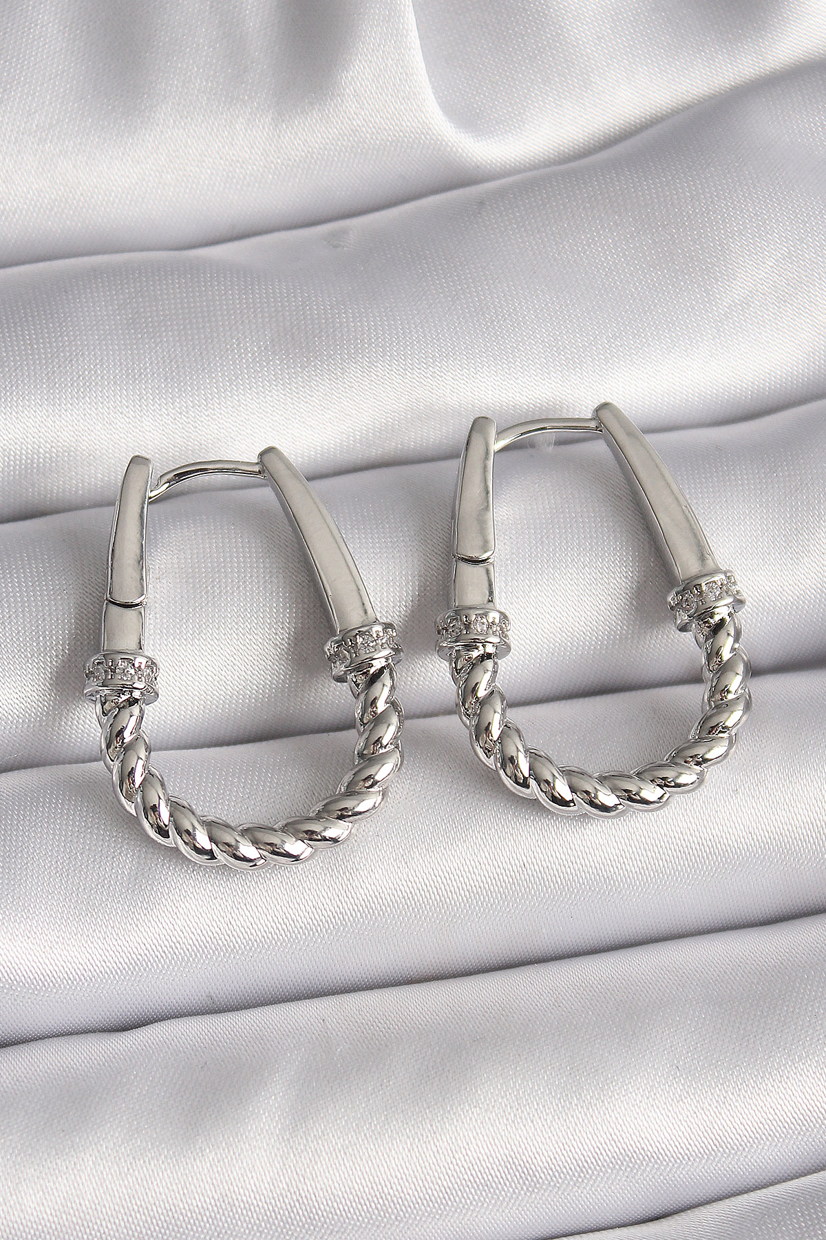 316L Çelik Gümüş Renk Zirkon Taş Detaylı Burma Halka Model Kadın Küpe - 258825