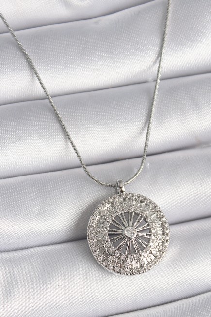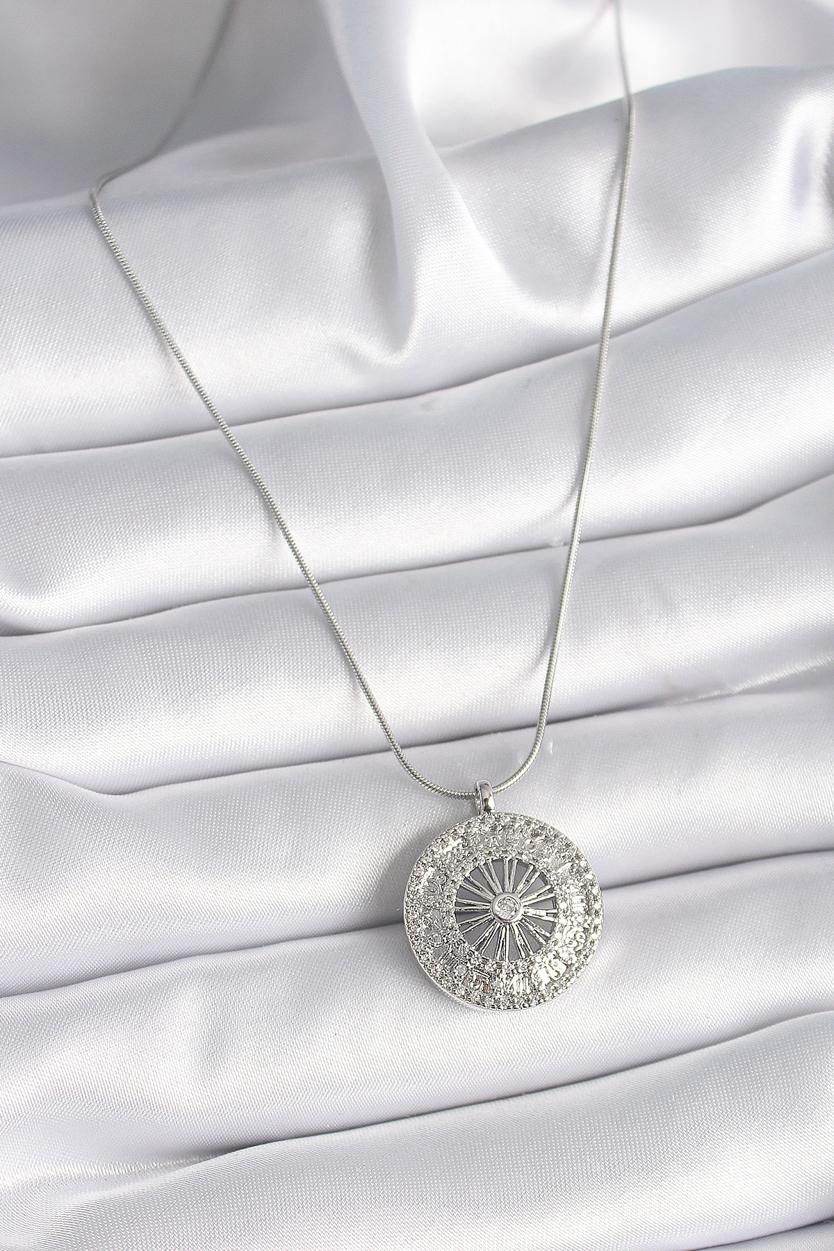 316L Çelik Gümüş Renk Zirkon Taşlı 12 Burç Madalyon Model Kadın Kolye - 259067