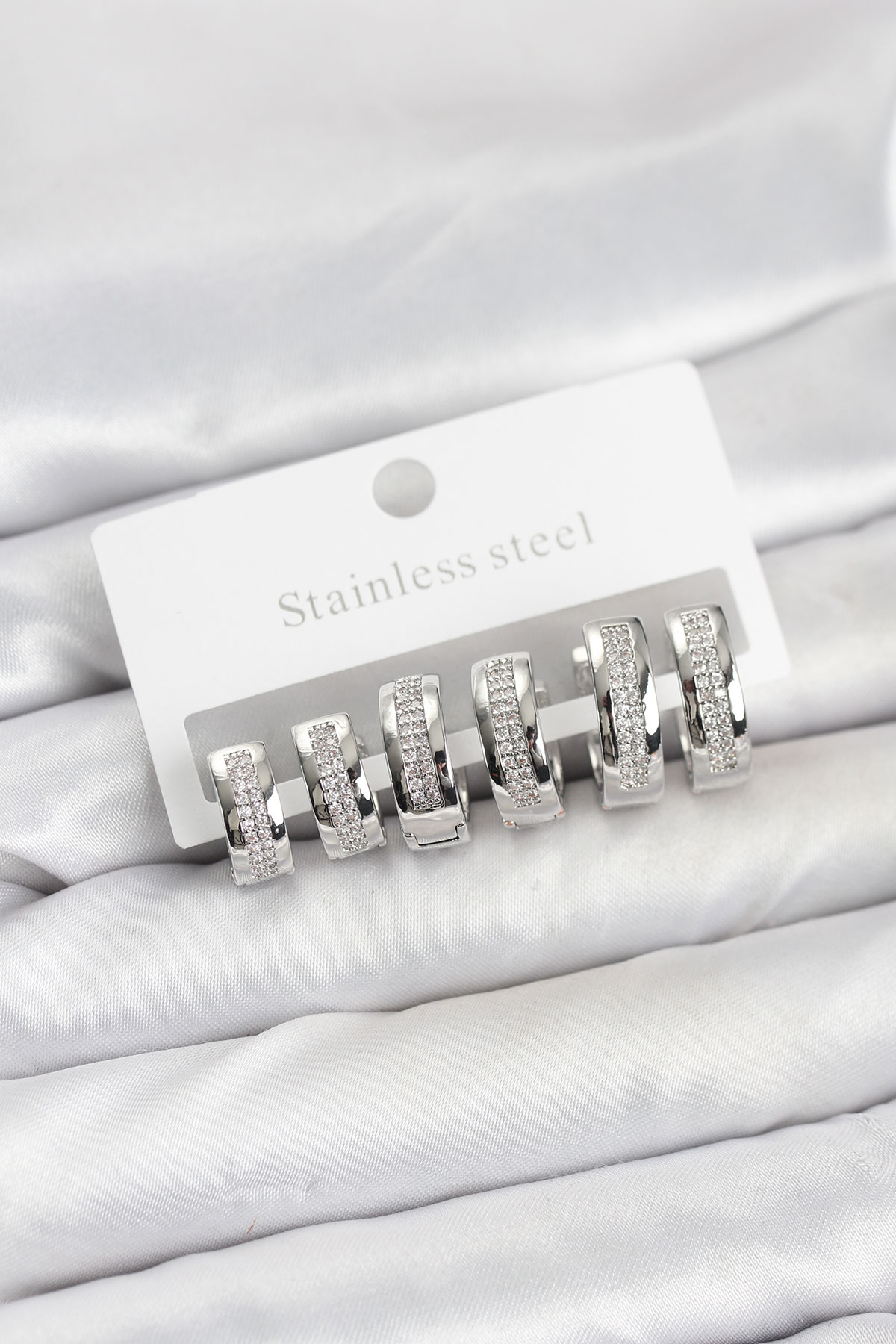 316L Çelik Gümüş Renk Zirkon Taşlı Halka Küpe Seti - 266802