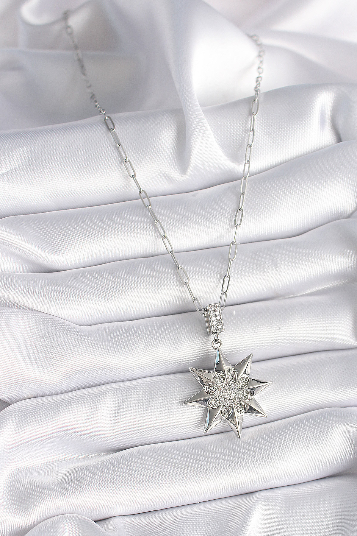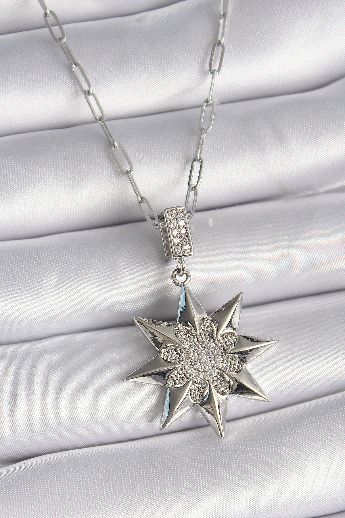 316L Çelik Gümüş Renk Zirkon Taşlı Kutup Yıldızı Model Kadın Kolye - 259057