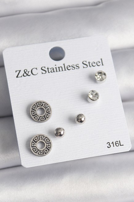 316L Çelik Gümüş Renk Zirkon Taşlı Labirent Model Kadın Küpe Seti - 260073