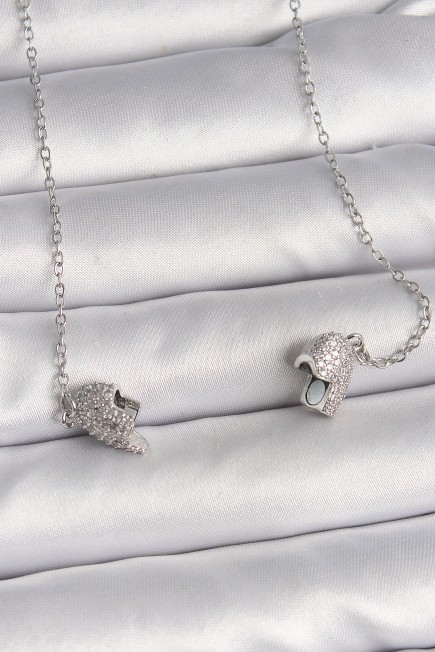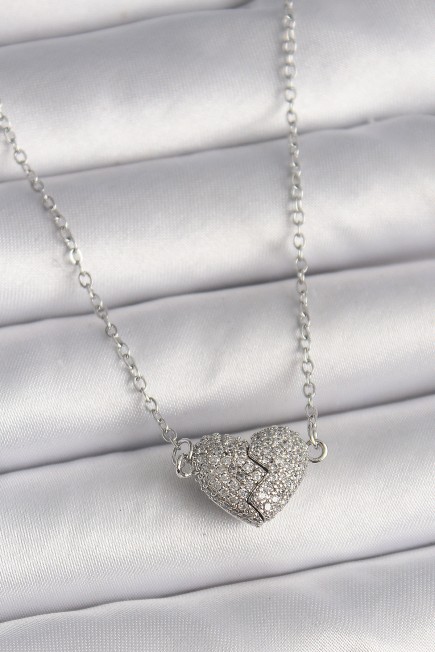 316L Çelik Gümüş Renk Zirkon Taşlı Mıknatıslı Kalp Model Kadın Kolye - 260234
