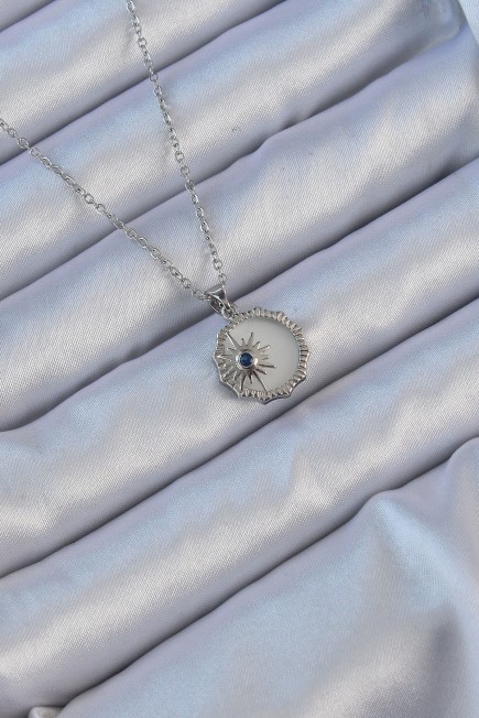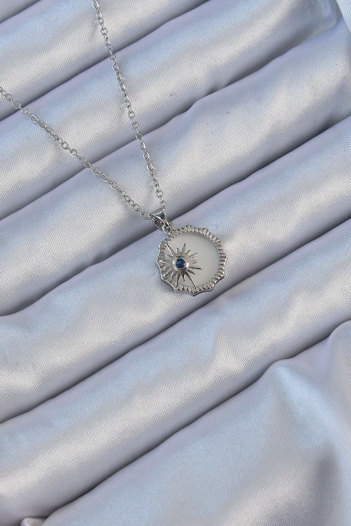 316L Çelik Gümüş Renk Zirkon Taşlı Mineli Kutup Yıldızı Kolye - 256934