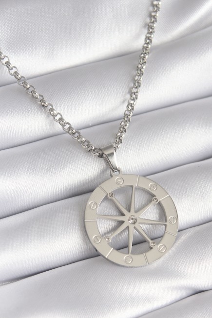 316L Çelik Gümüş Renk Zirkon Taşlı Rüya Kapanı Model İşeme Detay Kadın Kolye - 253534
