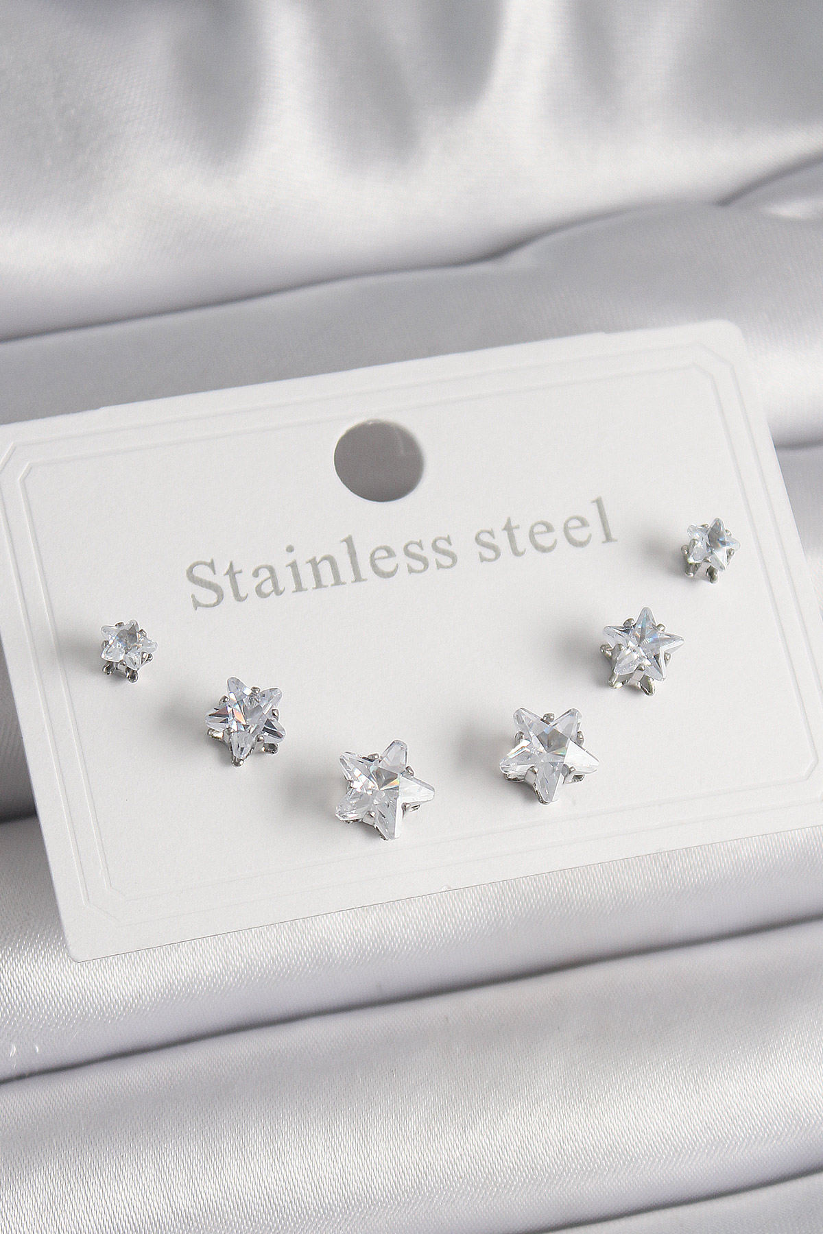 316L Çelik Gümüş Renk Zirkon Taşlı Yıldız Model Kadın Küpe Seti - 259573