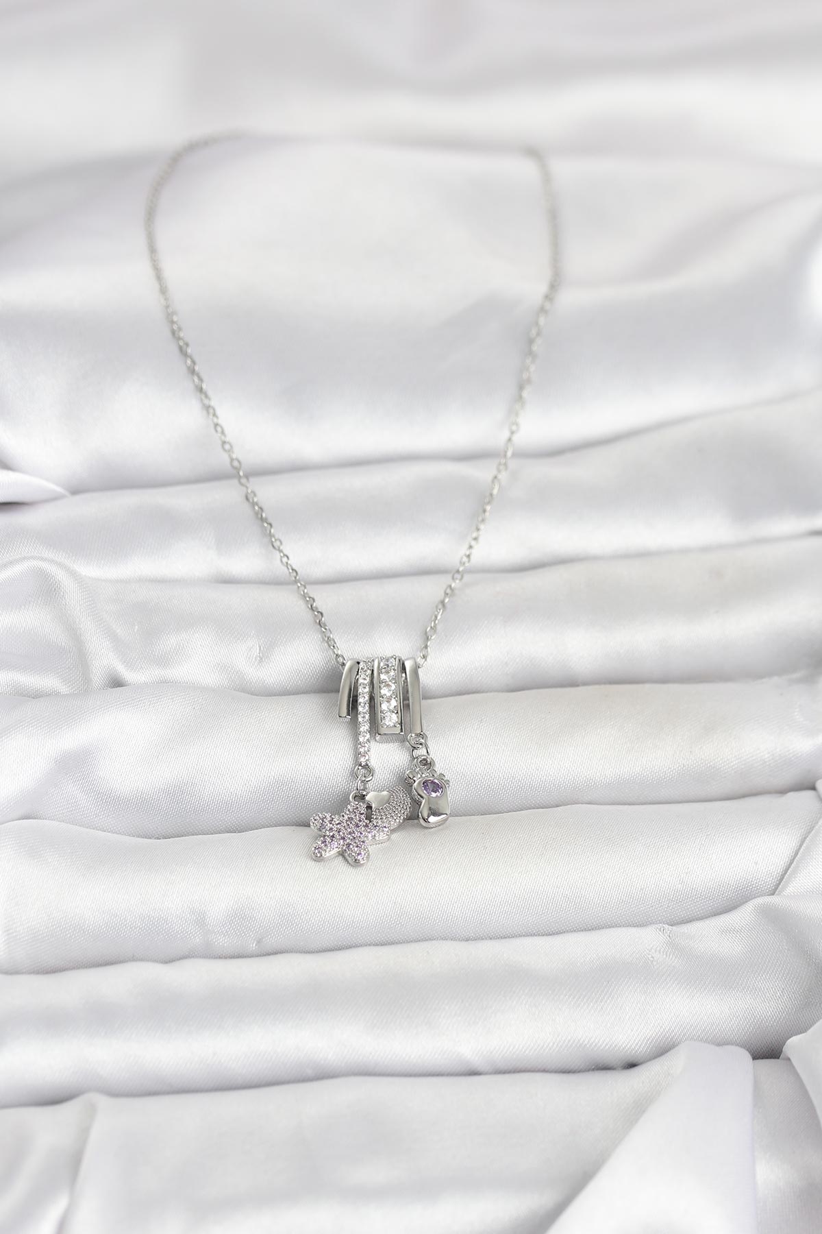 316L Çelik Gümüş Zirkon Taşlı Deniz Tema Charmlı Kadın Kolye - 268187