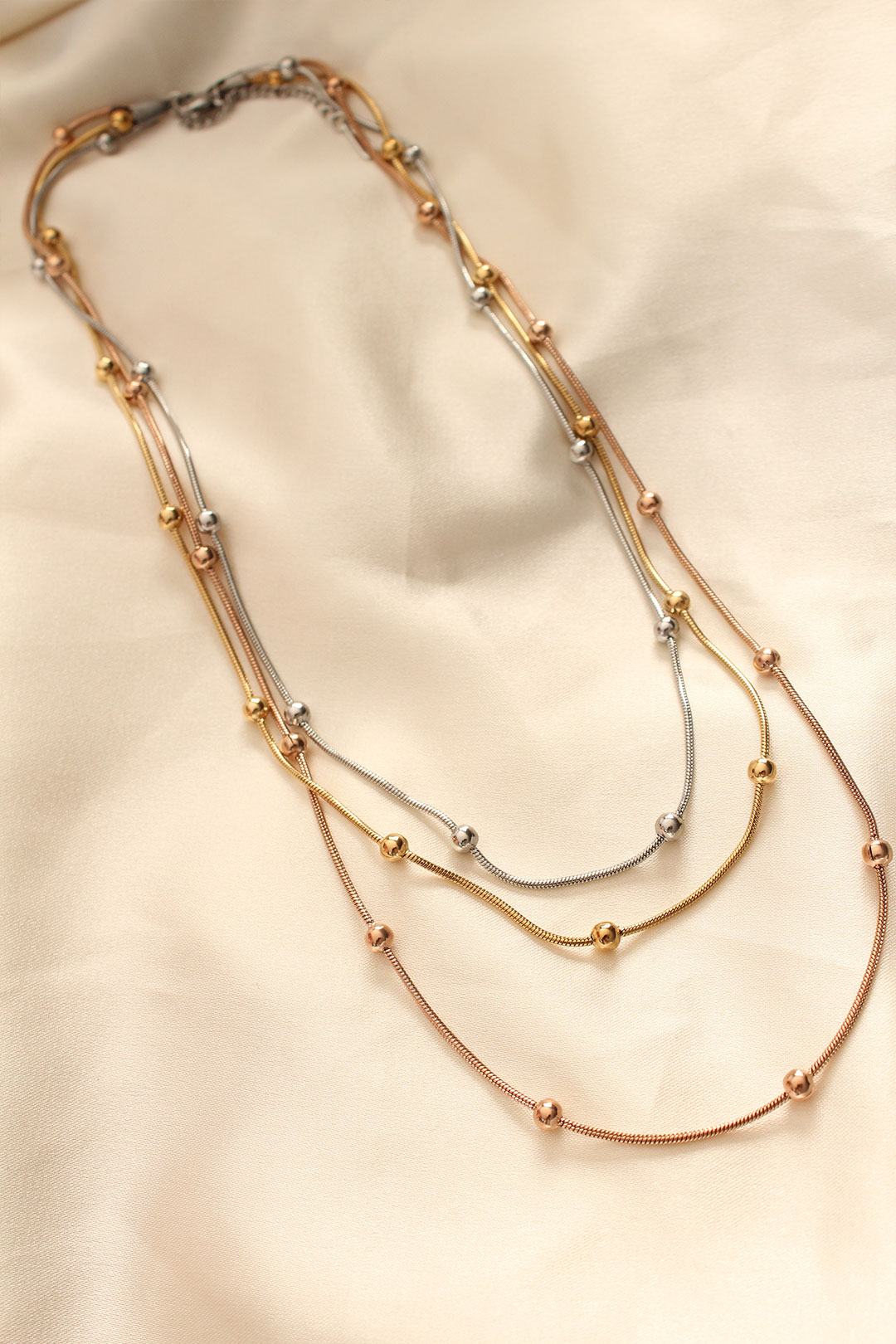 316L Çelik Karışık Renkli Topçuk Tasarımlı Çoklu Kolye - 240335
