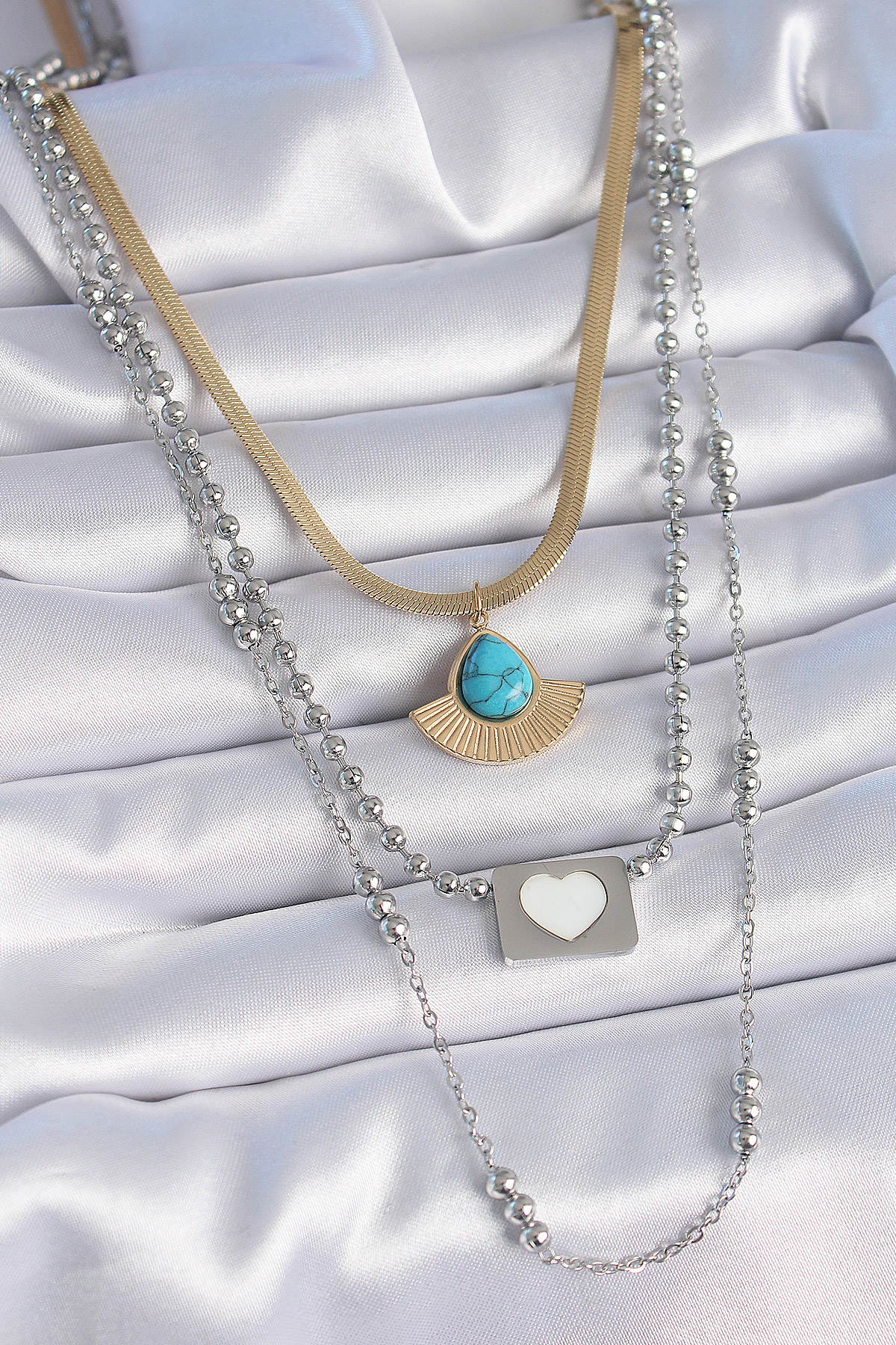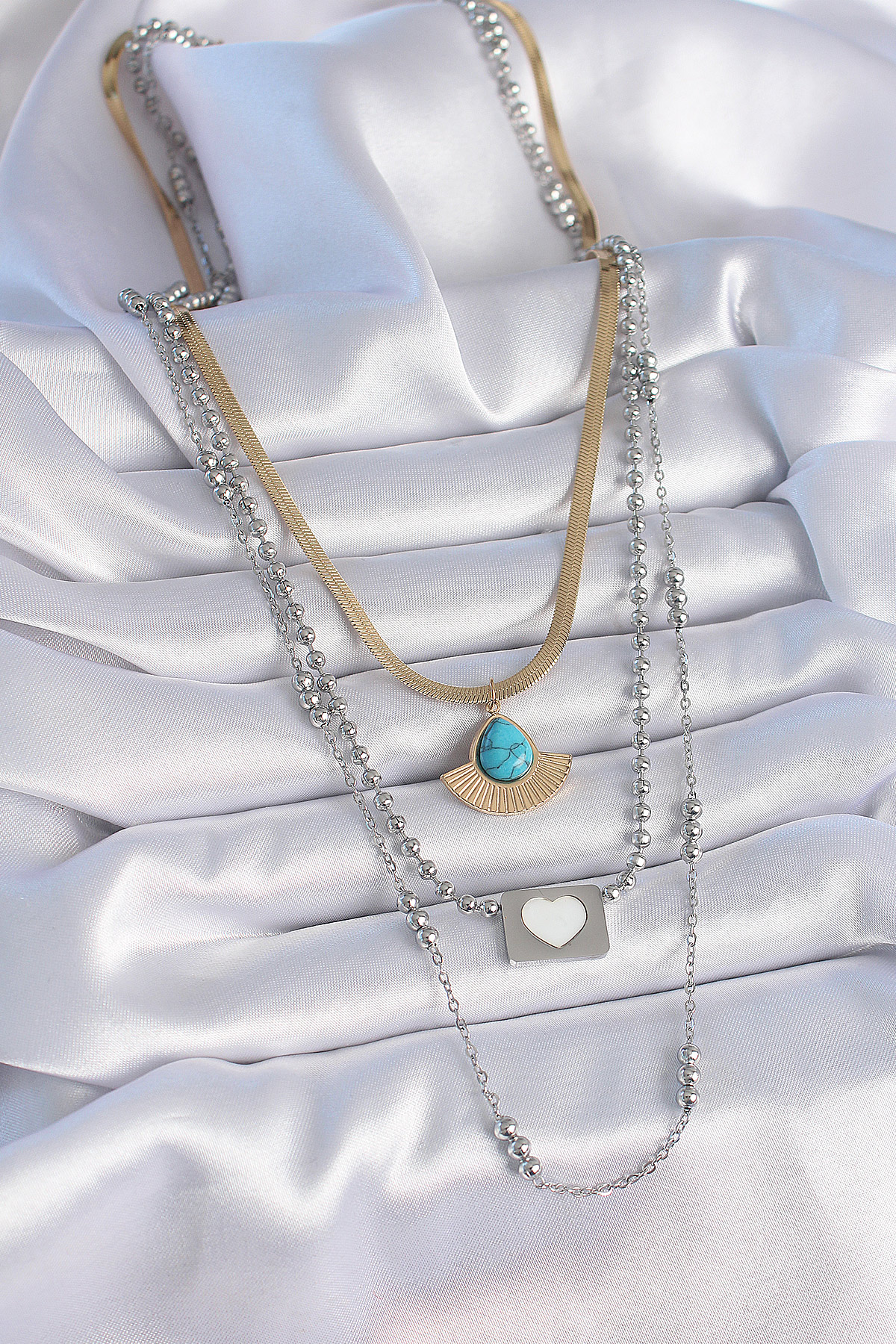 316L Çelik Mix Renk 3'lü Zincir Damla Madalyon Figür Uzun Kadın Kolye - 258297