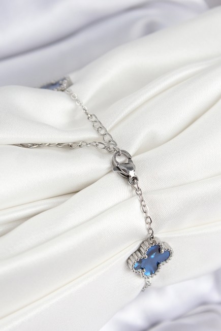 316L Çelik Sedefli Lacivert Gümüş Renk Yonca Kadın Bileklik - 264701