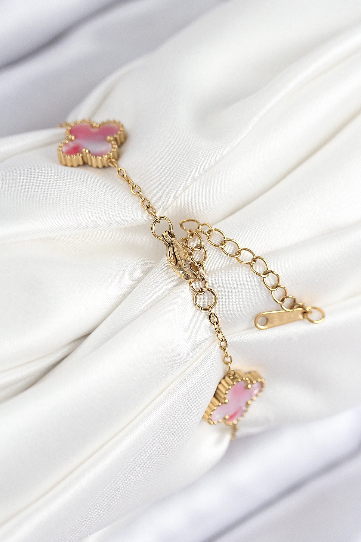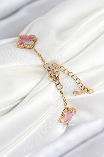 316L Çelik Sedefli Pembe Gold Renk Yonca Kadın Bileklik - 265272