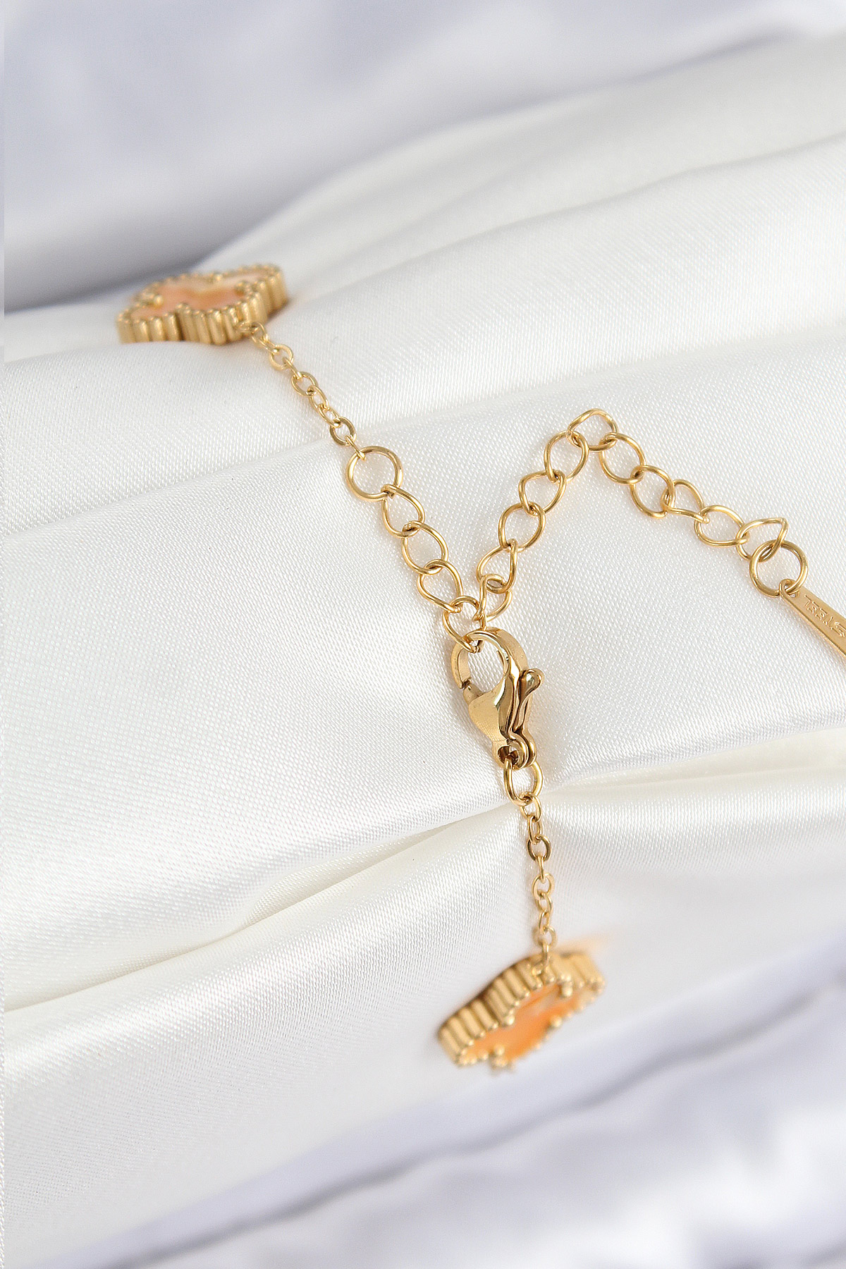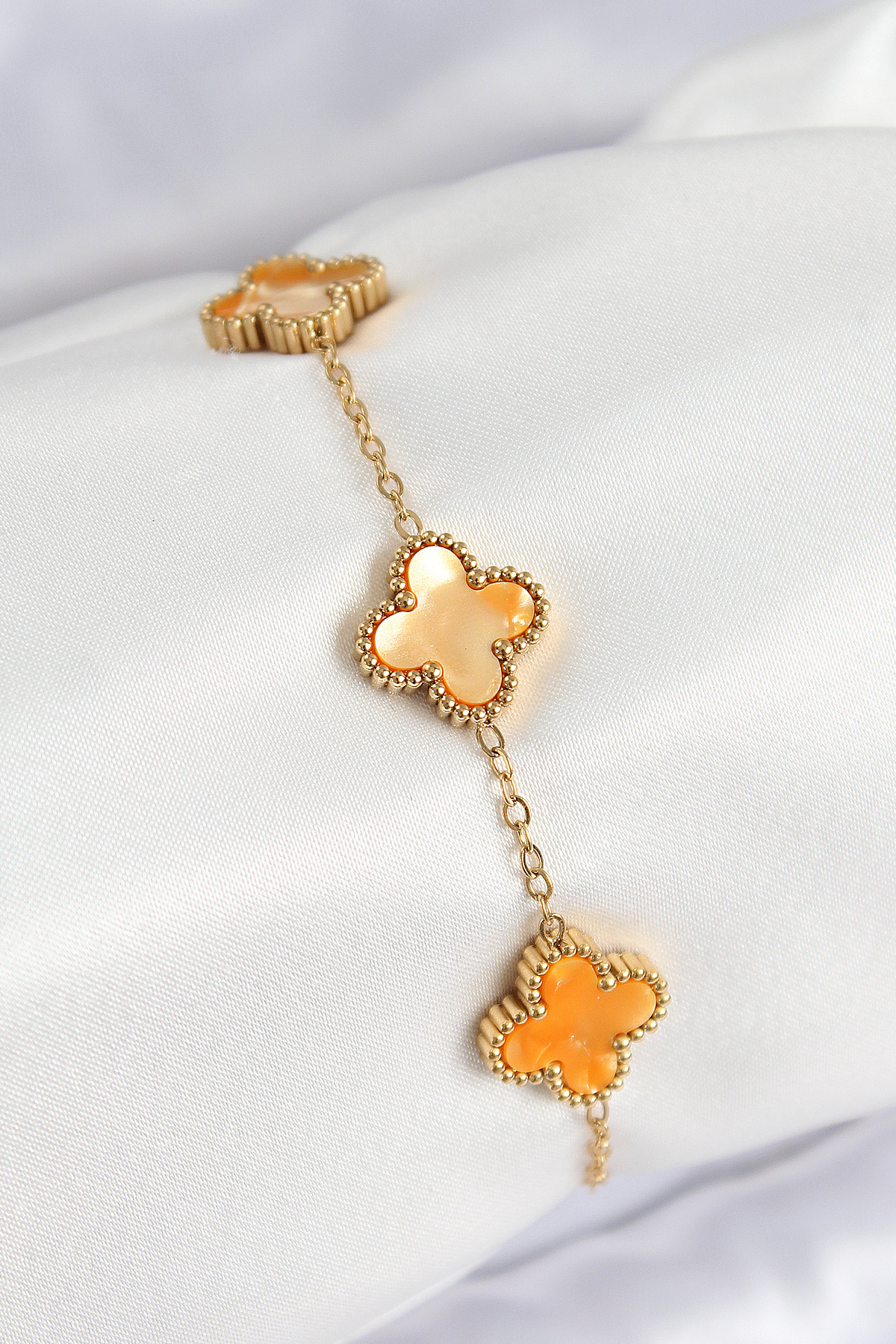 316L Çelik Sedefli Turuncu Gold Renk Yonca Kadın Bileklik - 264698